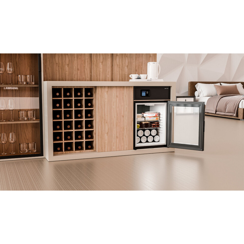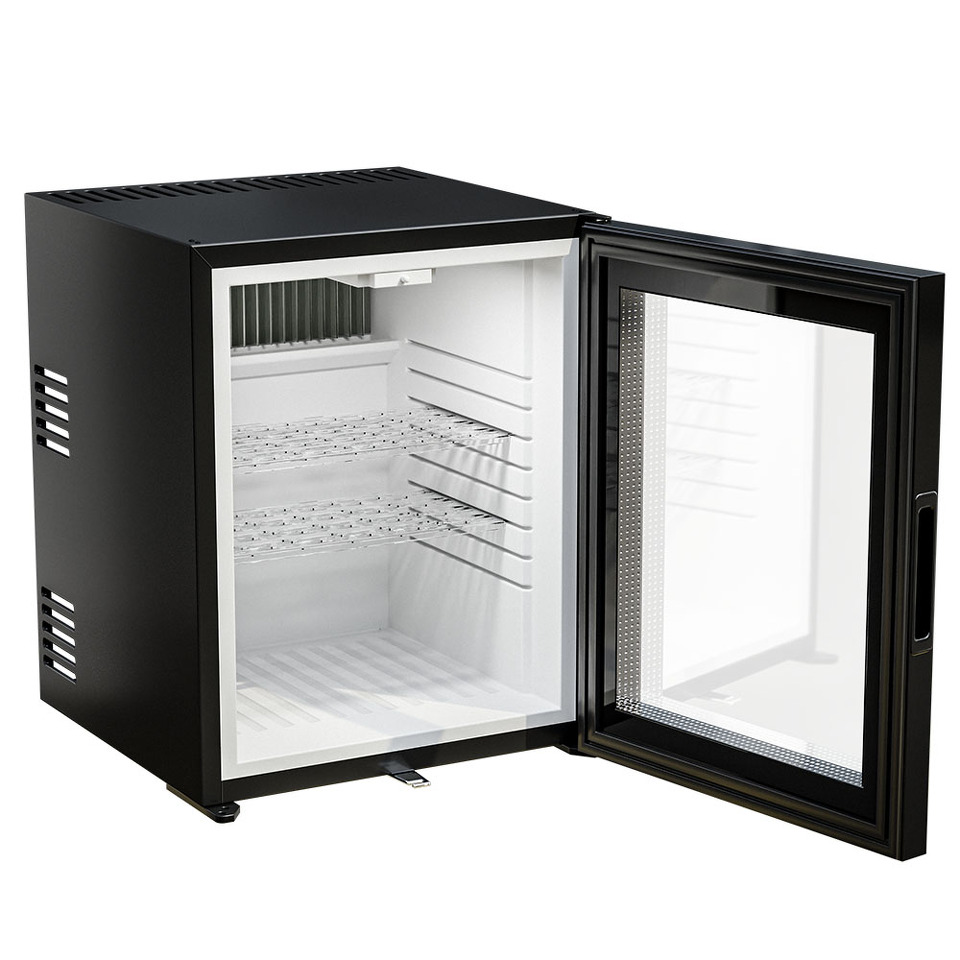 В абсорбционной системе охлаждения отсутствуют движущиеся части, поэтому прибор работает бесшумно, что важно для гостиниц, спален и офисов, где тишина играет важную роль. Мини-бар не создает вибраций и издает неприятных звуков, не нарушая сон или рабочую атмосферу.