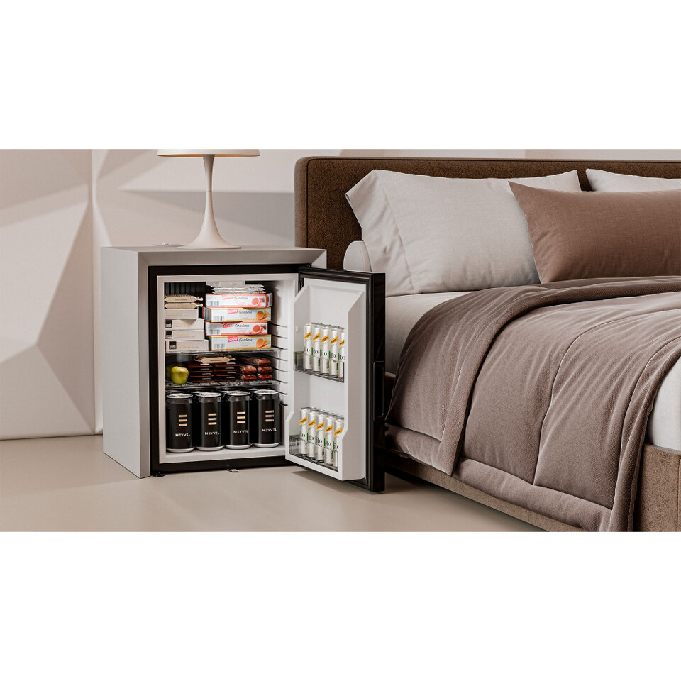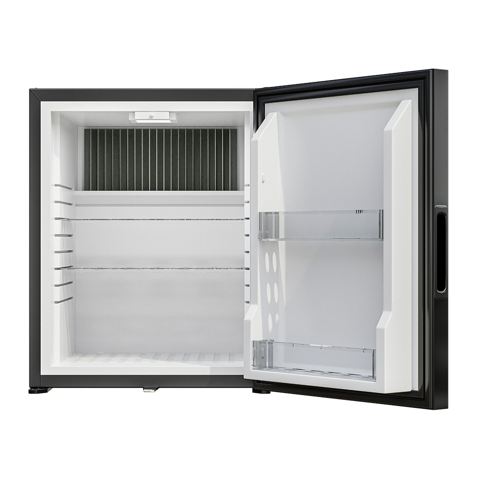 В абсорбционной системе охлаждения отсутствуют движущиеся части, поэтому прибор работает бесшумно, что важно для гостиниц, спален и офисов, где тишина играет важную роль. Мини-бар не создает вибраций и издает неприятных звуков, не нарушая сон или рабочую атмосферу.