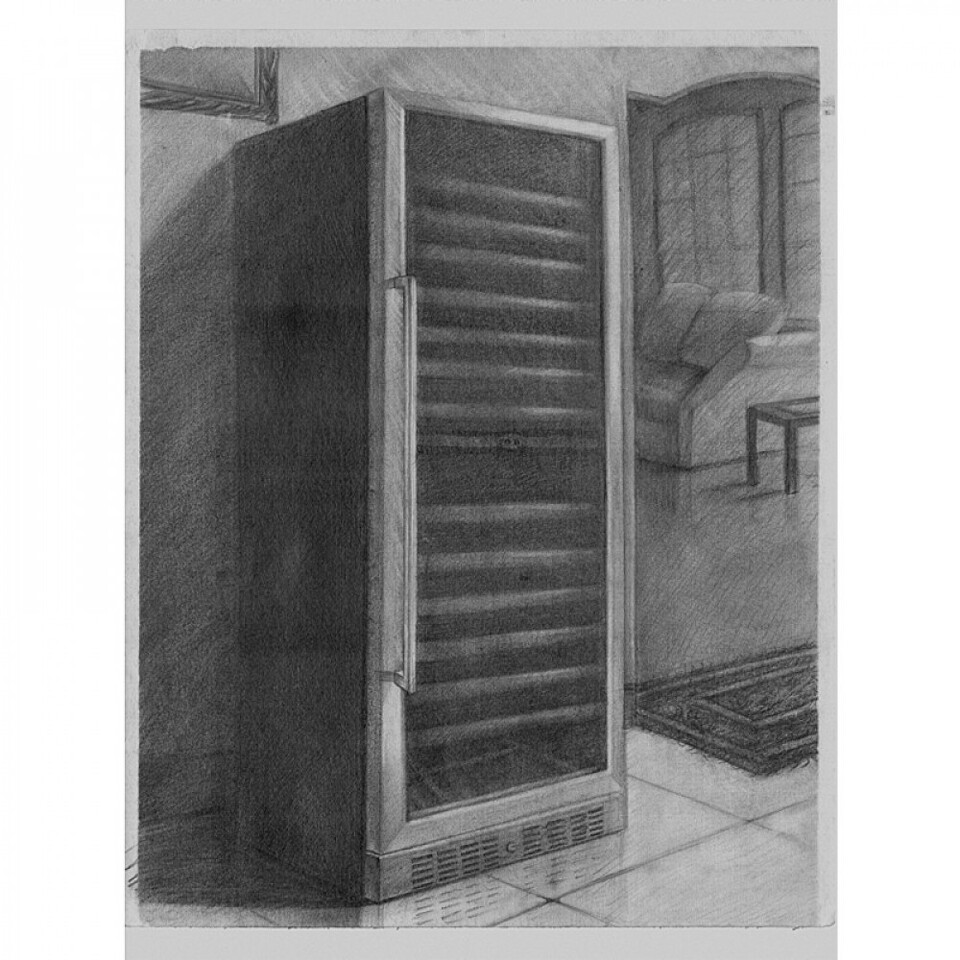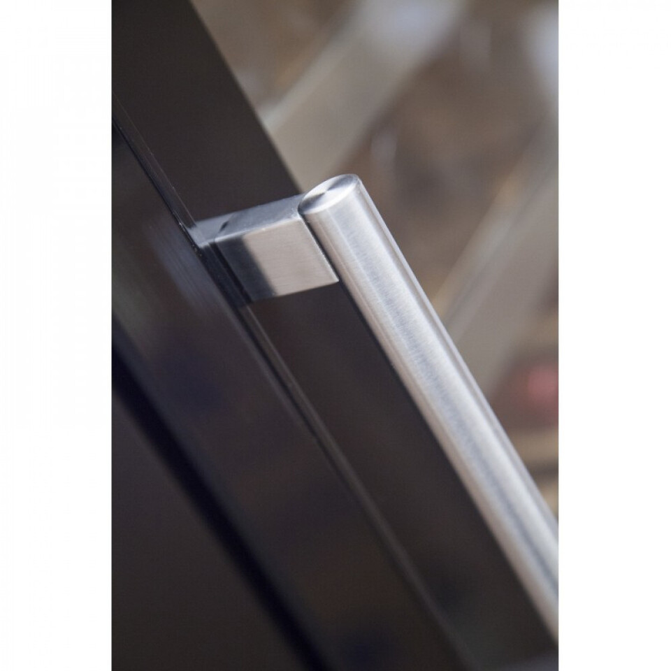 Корпус шкафа металлический с покрытием черного цвета, дверца выполнена из прозрачного стекла, защищенного от воздействия ультрафиолетовых лучей. Ручка двери удобная, накладная, выполнена из нержавеющей стали. Цифровой индикатор температуры и внутреннее освещение - на светодиодах синего цвета.