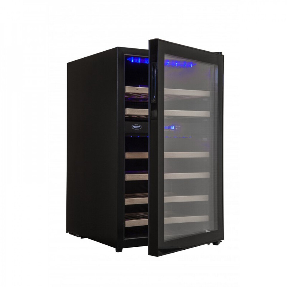Винный шкаф Cold Vine C34-KBF2 оснащен электронной панелью управления с цифровым дисплеем, температура в холодильной камере поддерживается с высокой точностью. Стекло дверцы защищено от воздействия вредных для вина ультрафиолетовых лучей. Для удобства потребителя модель снабжена индикатором температуры и светодиодной подсветкой.