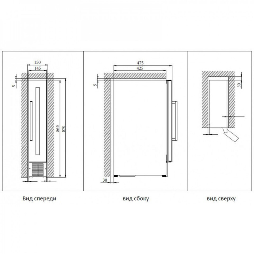 Благодаря своим компактным размерам C7-KBT1 легко встраивается под столешницу или устанавливается отдельно. Его ширина всего 145 мм, что обеспечивает установку шкафа в достаточно узком пространстве. Также винный холодильник может быть встроен в нишу с соблюдением необходимых зазоров: сверху 15 мм, справа и слева по 10 мм и сзади 30 мм. Рекомендуется устанавливать винный шкаф Cold Vine C7-KBT1 вдали от прямых солнечных лучей и источников тепла (духовки, нагревателя, батареи и т.д.). Прямой солнечный свет может плохо повлиять на корпус, а источники тепла могут увеличить энергопотребление. Не рекомендуется устанавливать прибор на полы с подогревом без специальной термоизолирующей подложки. Слишком низкая температура окружающей среды также может быть причиной неправильной работы изделия.