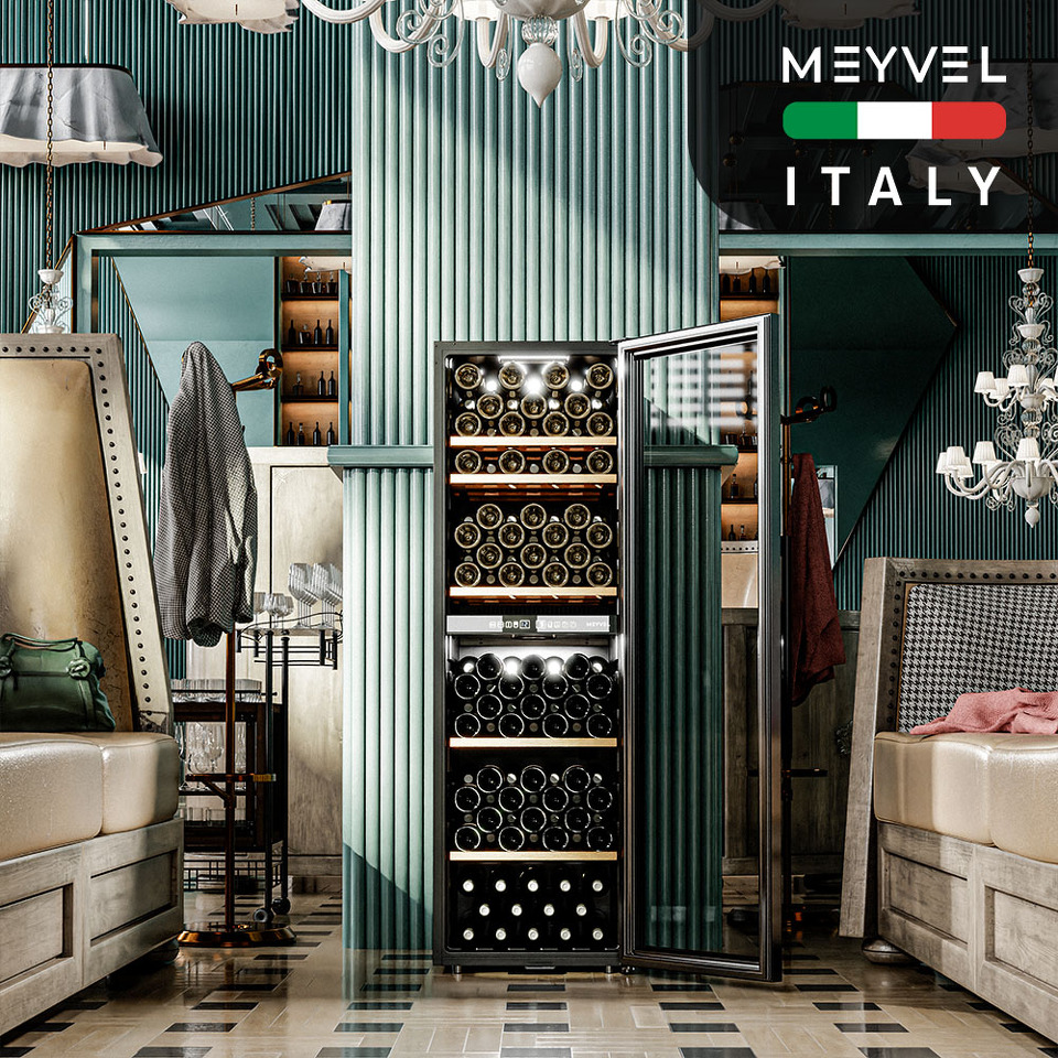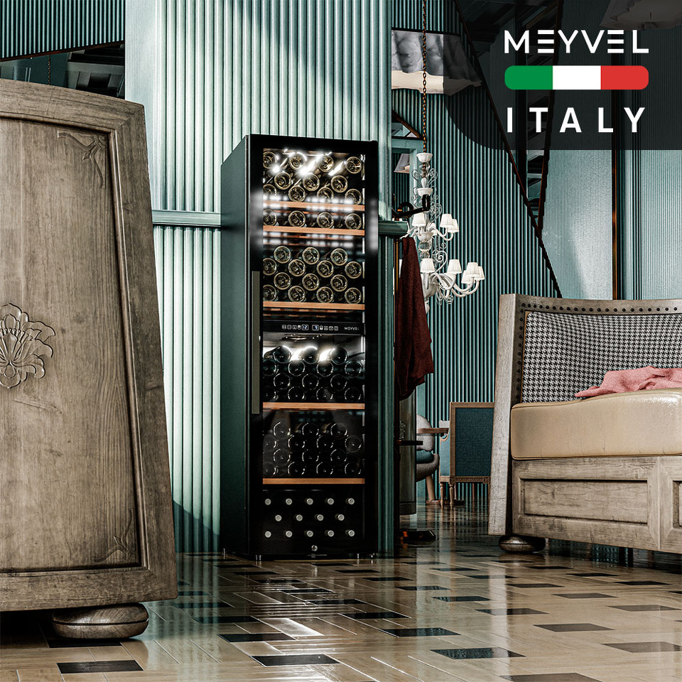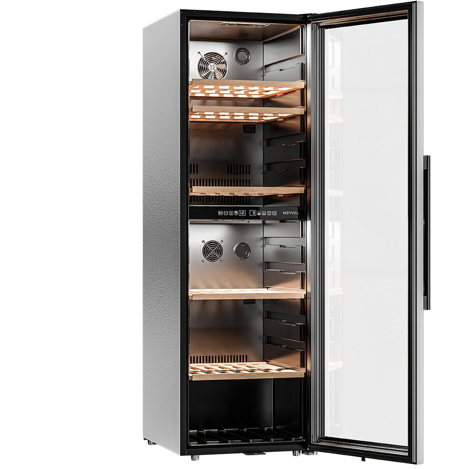 Meyvel MV126-KBF2 — отдельностоящее устройство, поэтому можно разместить его в любом удобном месте ресторана, отеля, бара или домашней винной комнаты без встраивания в мебель. Это удобно не только для создания стиля и атмосферы в интерьере, но и для предоставления легкого доступа к винам.