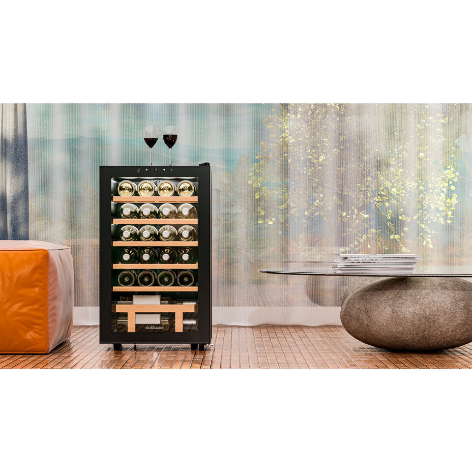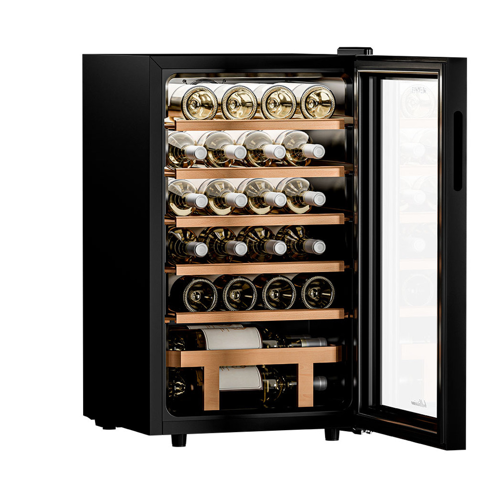 Уникальная система контроля температуры и влажности поддерживает оптимальные условия для длительного содержания напитков — от +5 до +18°C и влажность 60-80%. Двойное стекло с УФ-фильтром защищает бутылки от вредного воздействия солнечных лучей, сохраняя их превосходный вкус и аромат.