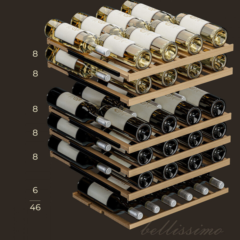 Вместимость 46 бутылок стандартного типа Бордо (0,75 л);