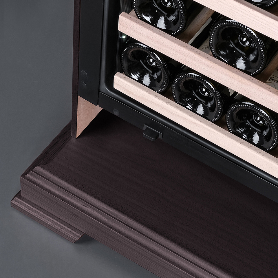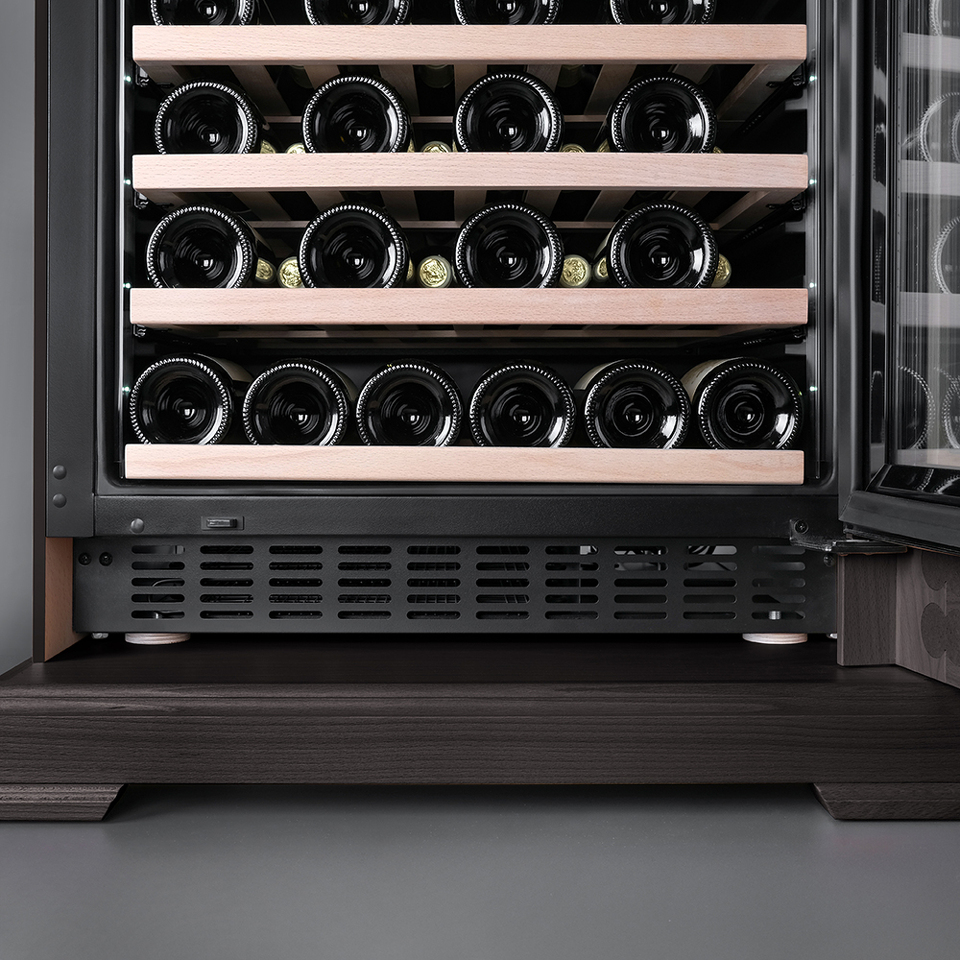 В винный шкаф встроен угольный фильтр, который будет очищать поступающий воздух от посторонних запахов, которые губительно влияют на вкусовые качества вина.