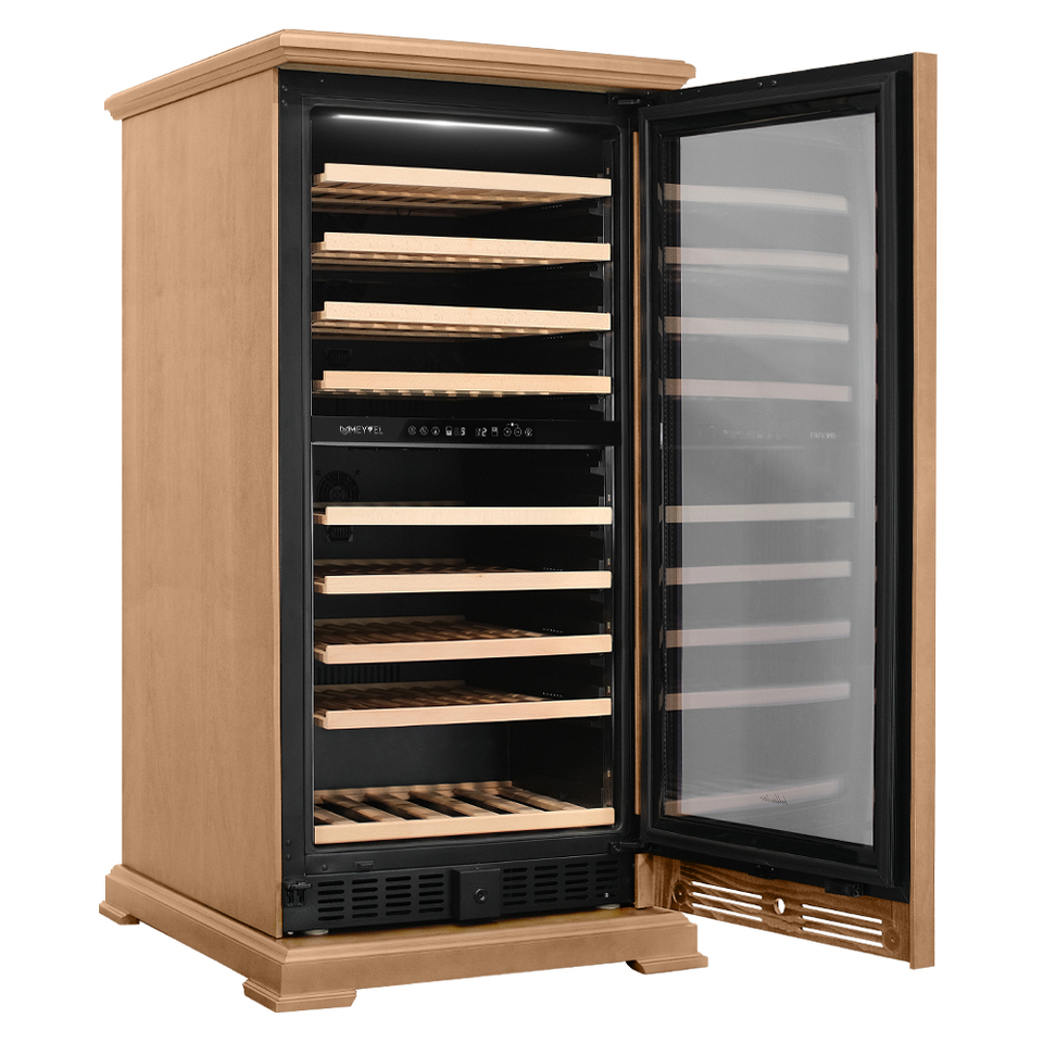 Модель MV99PRO-KBT2 (Натуральный бук) имеет привлекательный внешний вид, сочетающий в себе неподвластное времени очарование натуральных материалов с высокотехнологичными системами сохранения продуктов. Винный холодильник Meyvel MV99PRO-KBT2 (Натуральный бук) оснащен дверью с защитой от ультрафиолетовых лучей и отлично подойдет для хранения и созревания различных сортов вин. Динамическая система охлаждения обеспечивает оптимальную температуру для вина и сохраняет необходимую влажность внутри камеры.