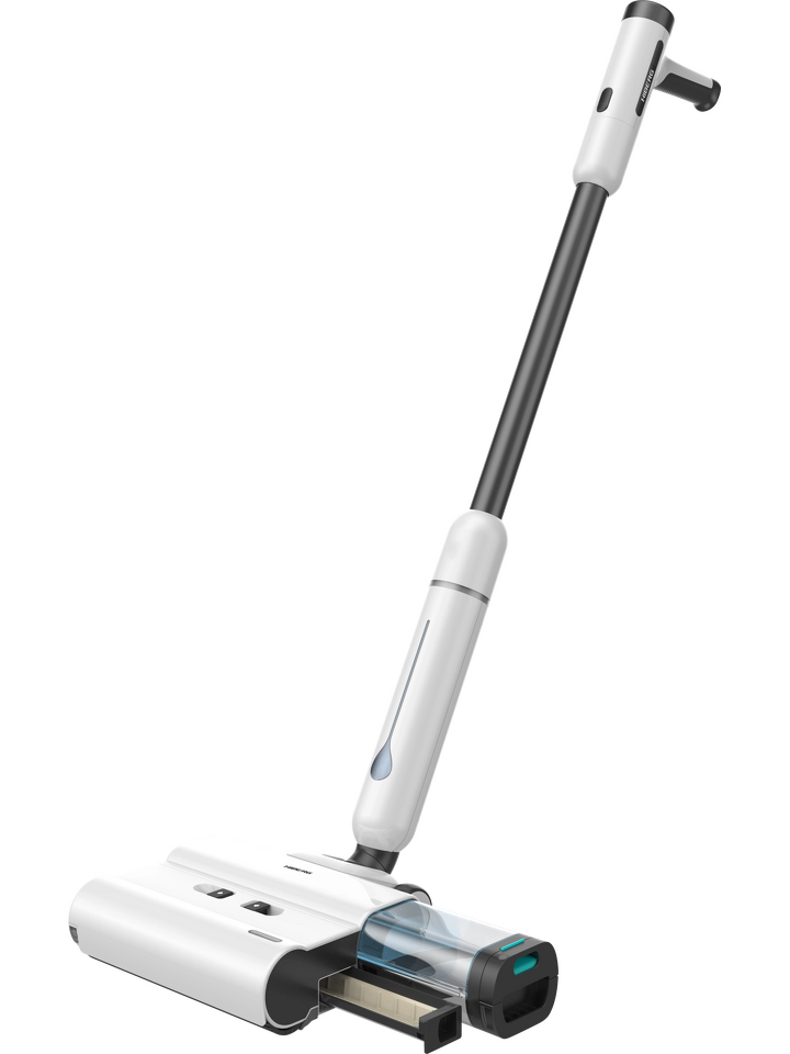 Эргономика и комфорт использованияКомпактный корпус весом всего 2,8 кг легко скользит по полу, обеспечивая маневренность даже в узких пространствах. Удобная форма и оптимальная высота корпуса позволяют без усилий убирать в узких пространствах и труднодоступных местах, а ручка с возможностью наклона до 180° расширяет диапазон движения, обеспечивая ещё больше свободы и возможностей для тщательной уборки. Вместительные резервуары — 450 мл для чистой воды и 500 мл для грязной — позволяют убирать без перерывов, а встроенный пылесборник на 150 мл собирает сухой мусор максимально эффективно. Управление с LED-дисплея делает работу с пылесосом интуитивной и по-настоящему удобной.