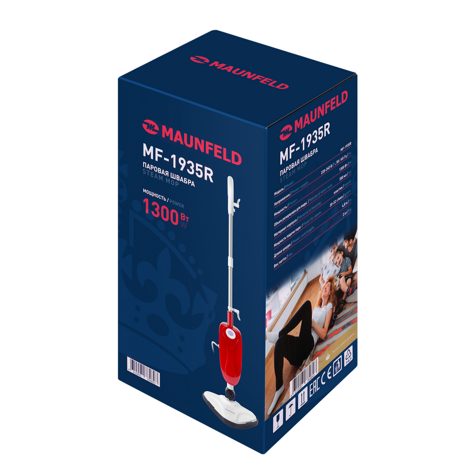 Высокая мощность 1300 Вт определяет не только отличное качество чистки, но и быстрый нагрев воды - 25 сек.: не нужно ждать образования пара перед началом уборки.
