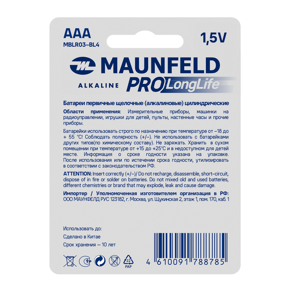 MAUNFELD Pro Long Life ААА - это выбор тех, кто ценит высокое качество, надежность и долговечность. Эти батарейки - отличный выбор для всех, кто ищет надежный источник питания для своих устройств.