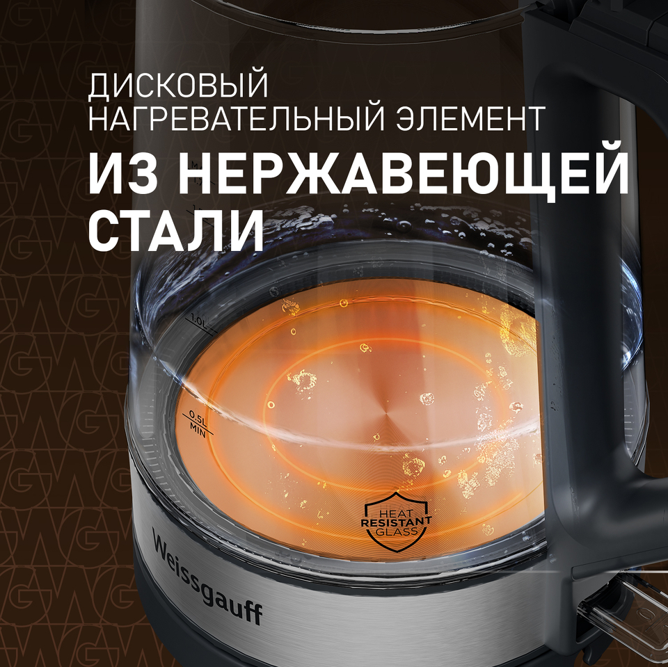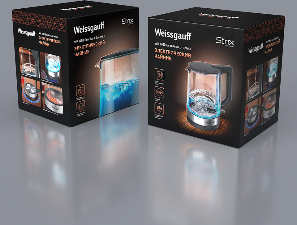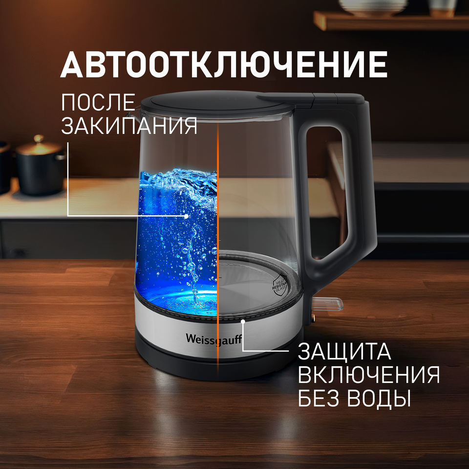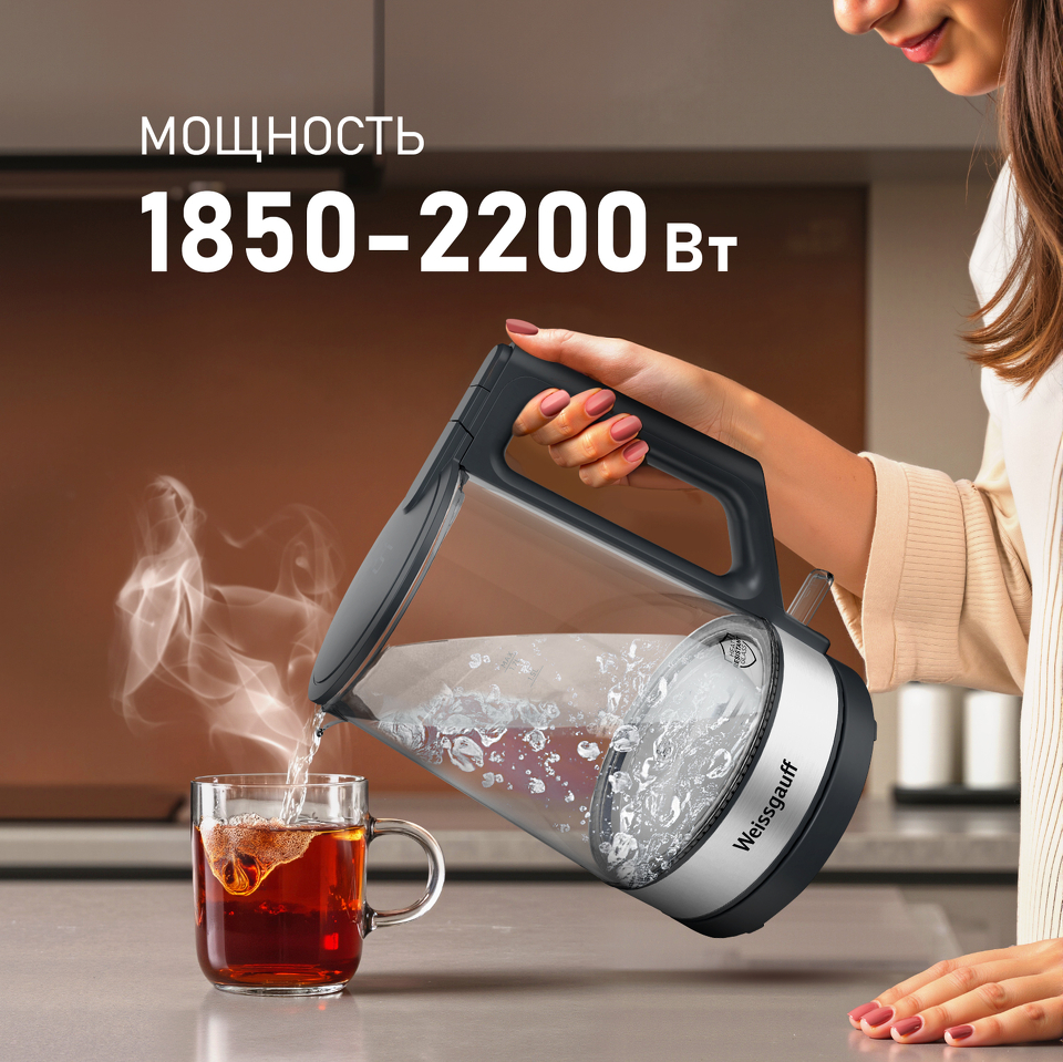 Вместительный электрический чайник от Weissgauff, выполненный в цвете графит и элегантным прозрачным корпусом из закаленного термостойкого стекла с внутренней подсветкой, обладает объемом 1,7 литра и инновационной контактной группой Strix осуществляющей автоотключение после закипания и без воды, обеспечит удобство и безопасность использования электрического чайника на вашей любимой кухне!