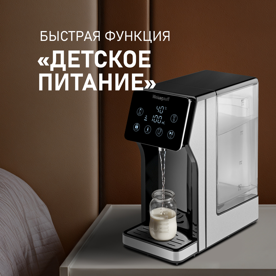 Быстрая функция "Детское питание" - позволит подать воду, нагретую до температуры 40 °C, что идеально подойдет для приготовления детских питательных смесей, а также для разведения сухого молока!