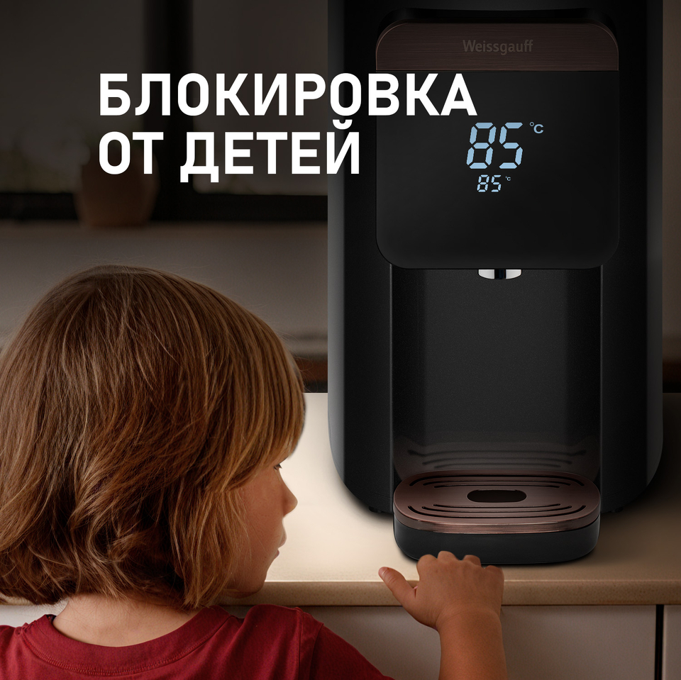 Диапазон температур от 45 до 95 °C, с возможностью выбора одного из 6 предустановленных уровней нагрева, позволит с легкостью обеспечить требуемую температуру подаваемой воды, исходя из предпочтений и пожеланий пользователя!