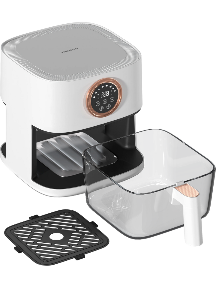 Аэрогриль HIBERG GF 400 GW объемом 4 литра, мощностью 1400 Вт, с сенсорным управлением и 8 автоматическими программами — удобное устройство для приготовления вкусных и полезных блюд, в том числе без использования масла и жира. Это достойная альтернатива духовому шкафу: аэрогриль занимает мало места на рабочей поверхности и в шкафу, потребляет меньше электроэнергии и готовит блюда быстрее.