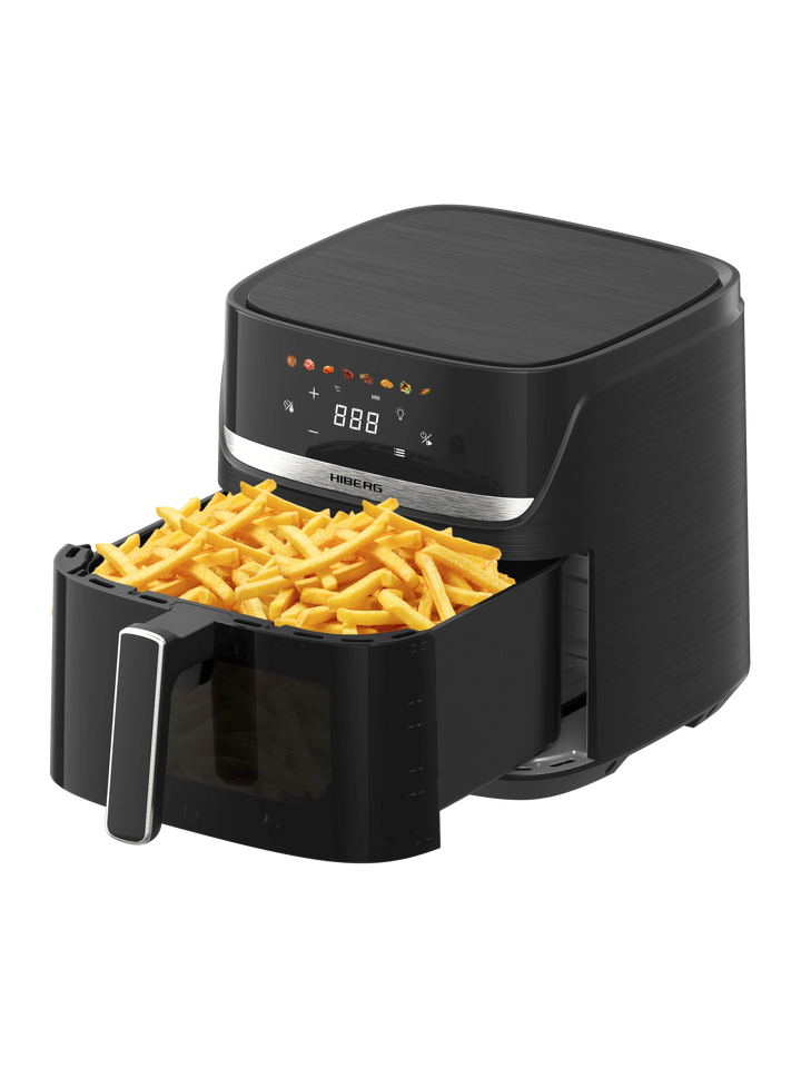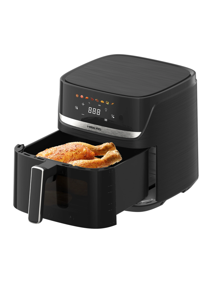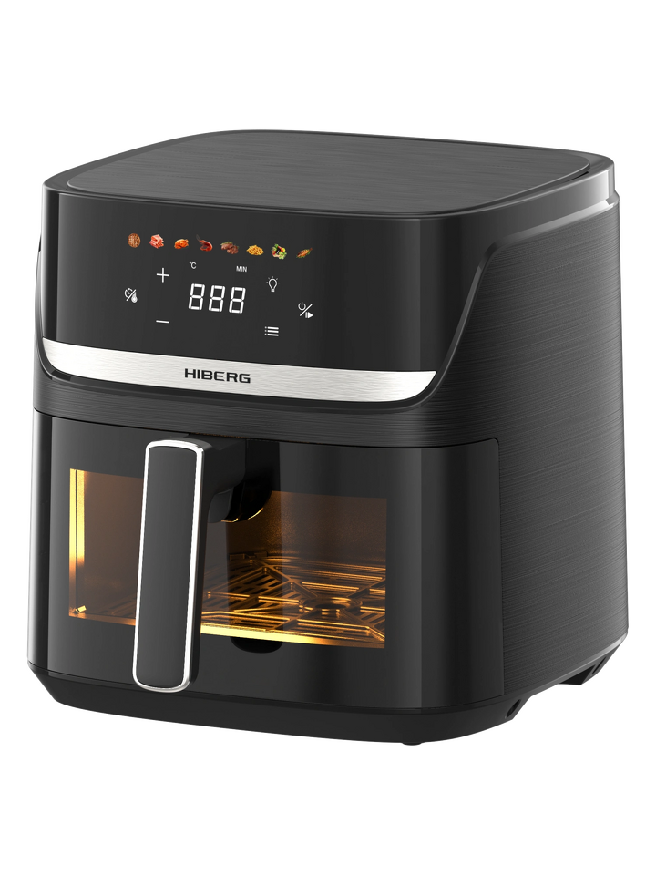 Модель HIBERG MGF 800 B предлагает 8 интеллектуальных режимов работы: выпечка, приготовление бекона, птицы, рыбы, морепродуктов, стейка, картофеля фри и овощей. С электрическим аэрогрилем можно готовить разнообразные блюда — от румяных стейков и сочной птицы до полезных овощей и воздушной выпечки.
