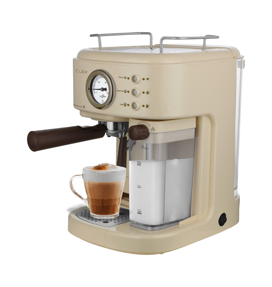 Кофеварка Lex LXCM 3504-1, кофеварка с капучинатором и с контейнером для молока (бежевая)