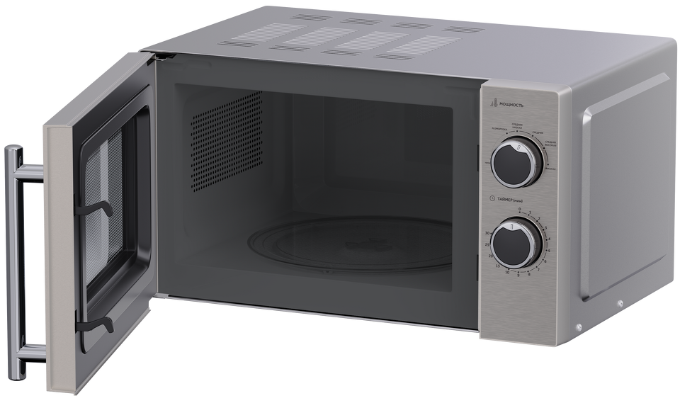 Объем камеры микроволновой печи 20 л, внутренняя камера с поворотным столом позволит быстро подогреть или приготовить блюдо.