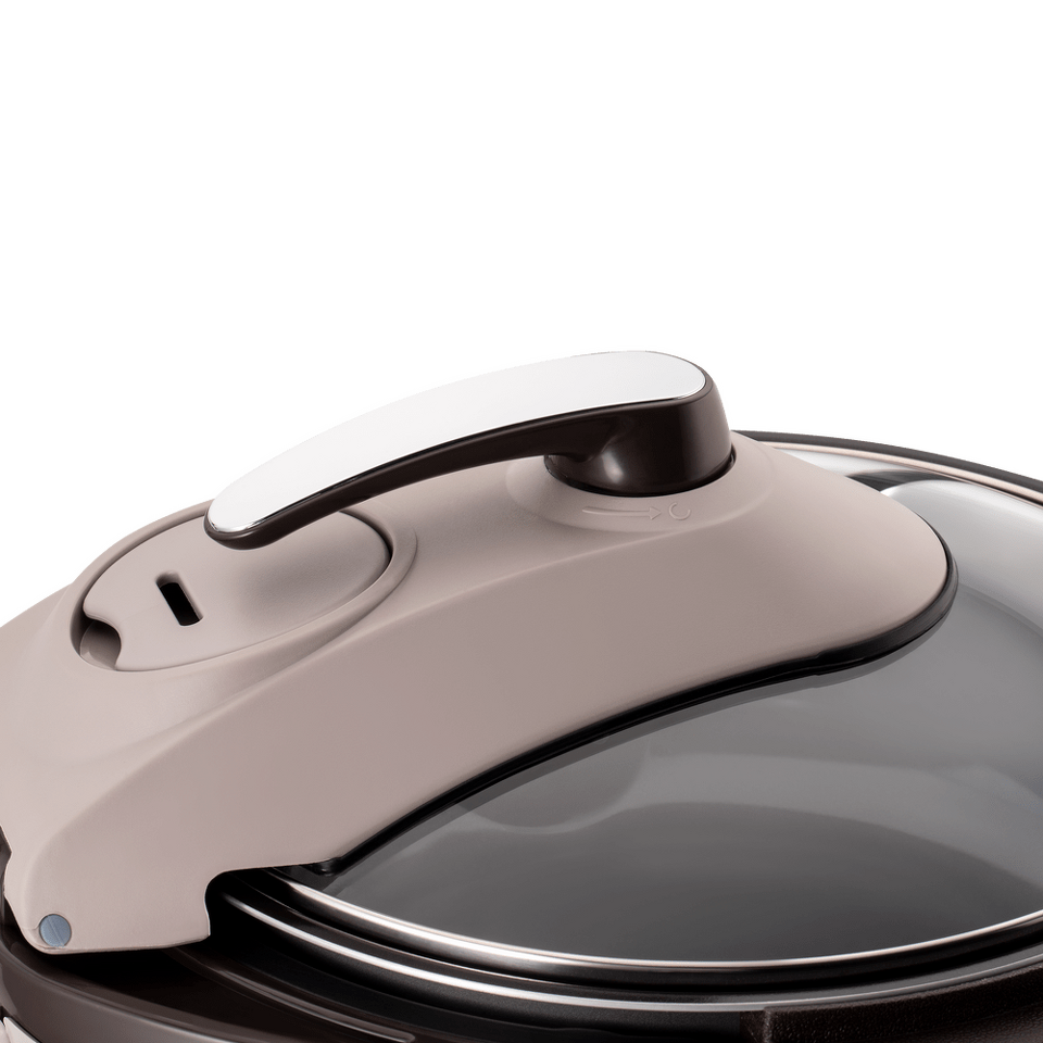 Удобная поворотная ручка на стеклянной крышке предусмотрена для правшей и левшей