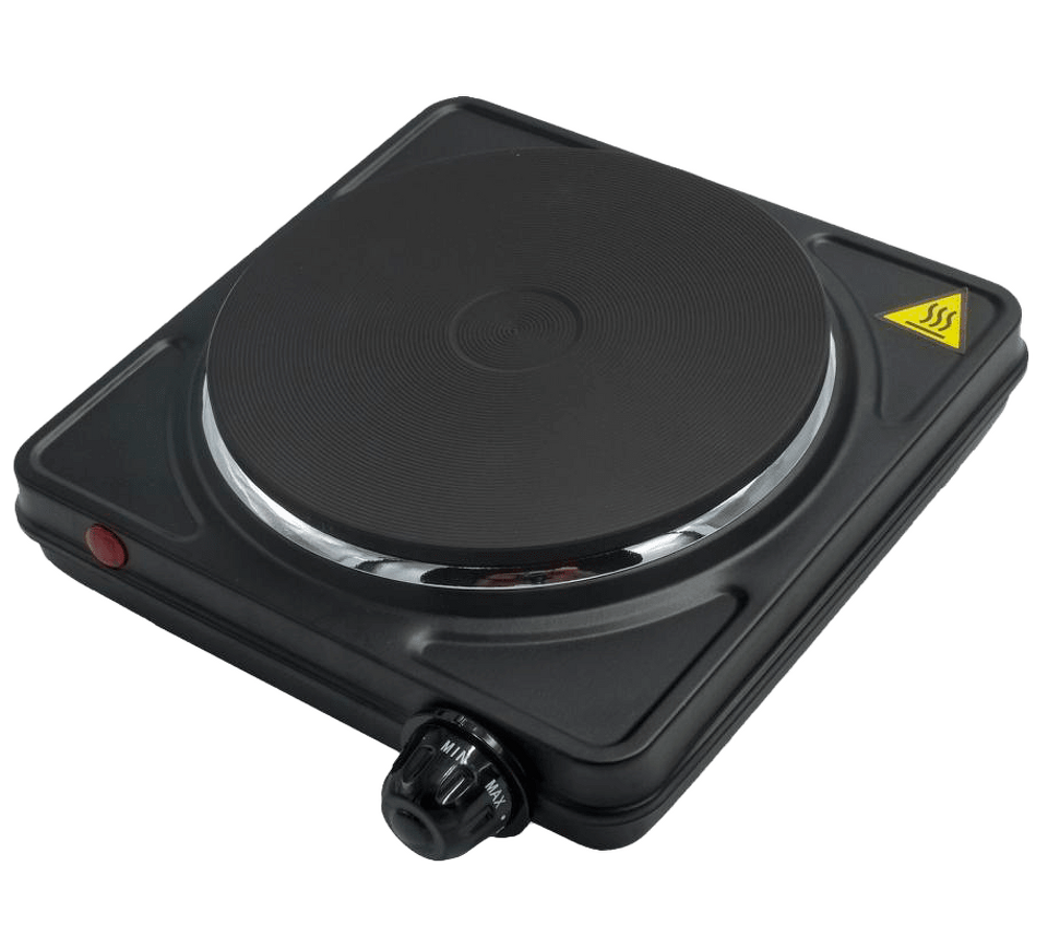 Классическая одноконфорочная переносная плита из металла с эмалевым покрытием. С индикатором работы и 5 уровнями мощности.