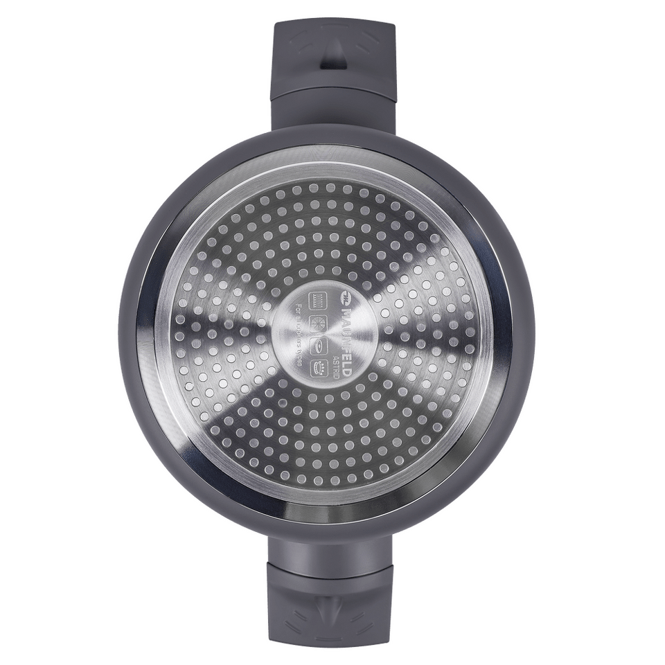 Толстые стенки обеспечивают высокую прочность и равномерное распределение тепла. Толщина дна составляет 3,5 мм., что оптимально для быстрого прогрева, идеальной теплопроводности и отсутствия риска деформации дна при нагреве.