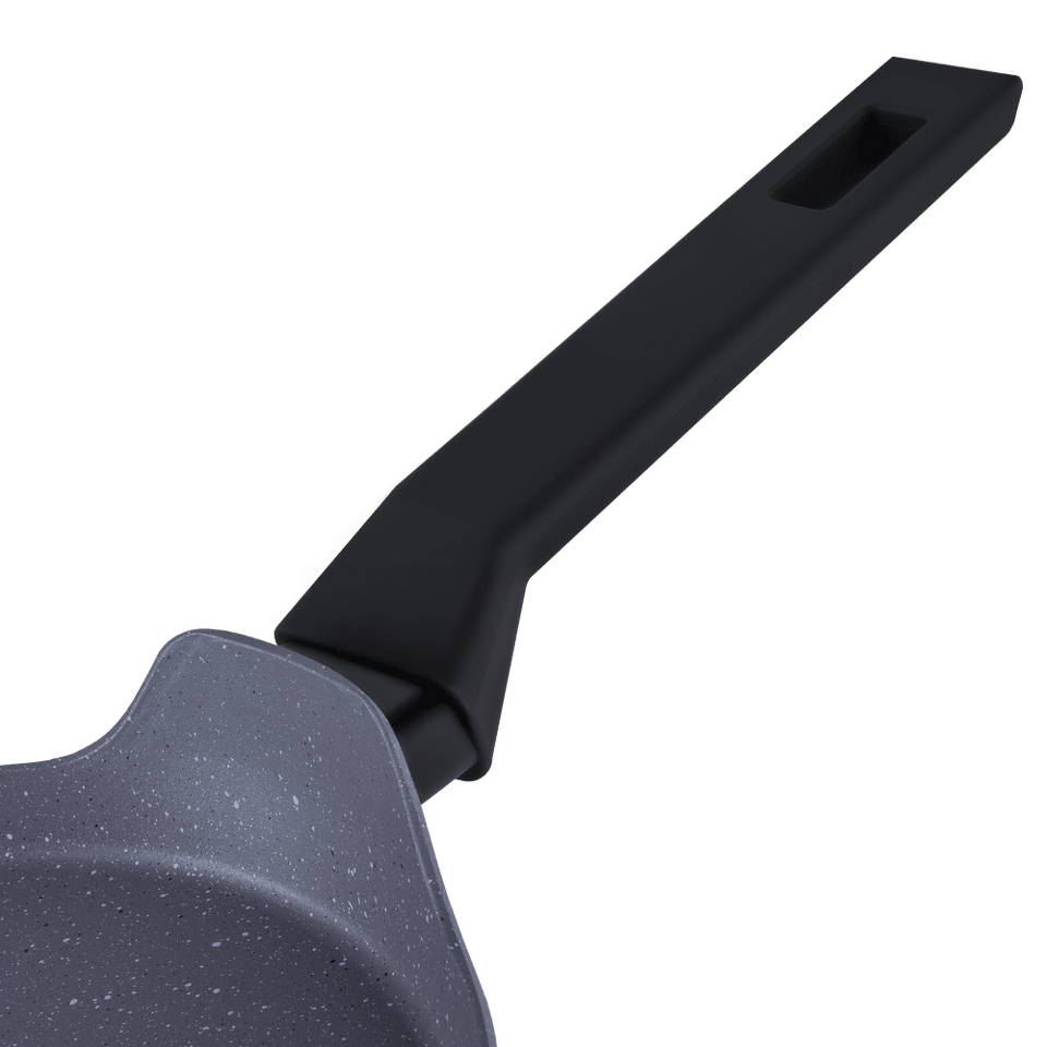 Эргономичная ручка из термостойкого бакелита с покрытием soft-touch не скользит в руке и не нагревается в процессе приготовления.