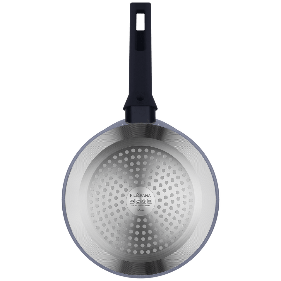 Блинная сковорода FILIGRANA серии SAGA изготовлена из кованого алюминия, толстые стенки и дно обеспечивают высокую прочность и равномерное распределение тепла.