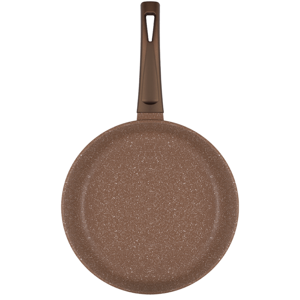 Сковорода с эффектным мраморным покрытием и современной ручкой в универсальном цвете, будет отлично сочетаться с любой кухней.