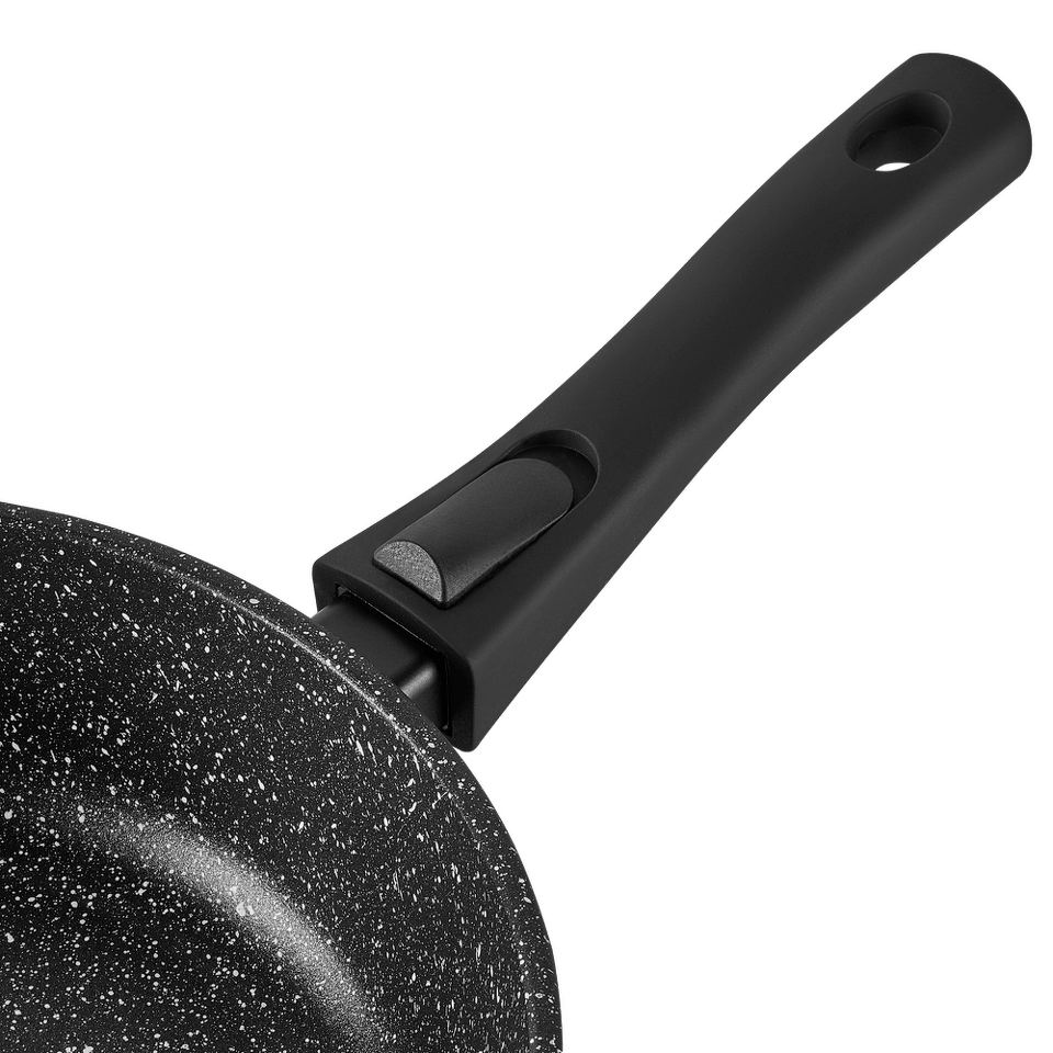 Элегантная сковорода в классическом черном цвете и мраморным антипригарным внутренним покрытием со съемной ручкой. Сковорода подойдет под любой интерьер кухни и не займет много места на полке. Можно использовать в духовке, предварительно сняв ручку. Современные и стильные формы- мы учли все мировые тенденции, чтобы посуда была 100% экологичной и стильной
