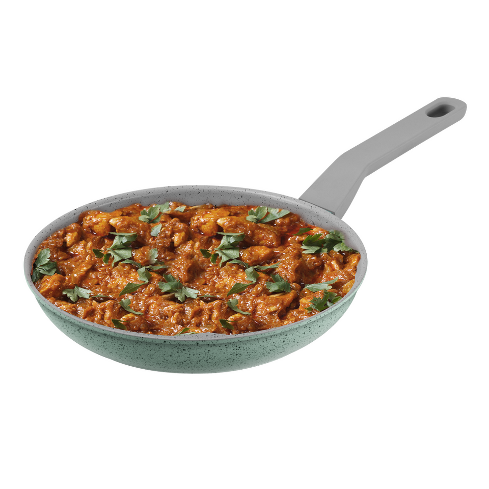 Мраморное антипригарное покрытие абсолютно инертно — это гарантирует, что в пищу не попадет никаких вредных примесей и веществ даже при воздействии очень высоких температур. Поверхность посуды не подвержена загрязнениям и не впитывает запахи.