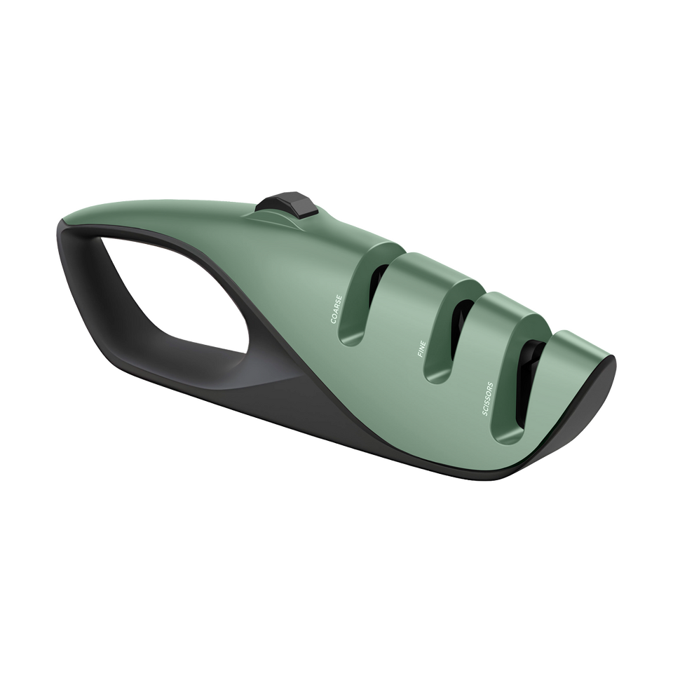 Тип: ручная (механическая) точилка для ножейМатериал: ABS-пластик, нержавеющая стальОсобенности: слот для ножниц, регулируемый уровень заточки