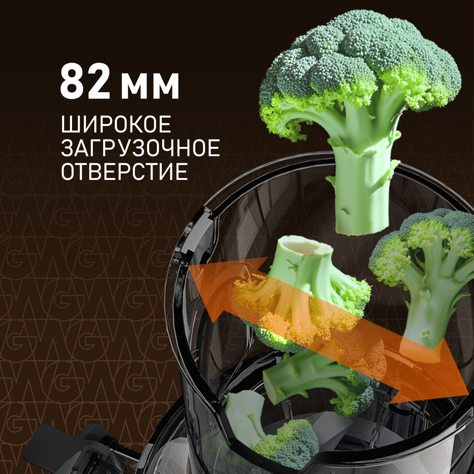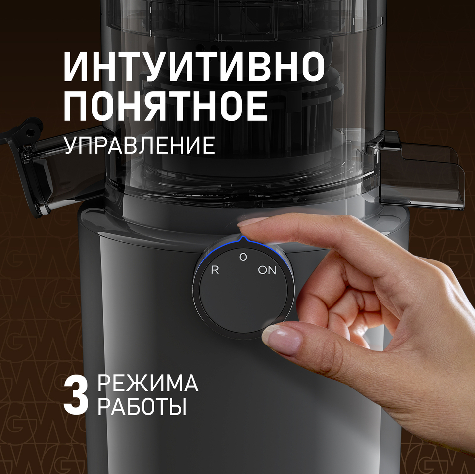 Weissgauff представляет современную шнековую соковыжималку, обладающую механическим управлением, функцией реверса и широким загрузочным отверстием 82 мм благодаря которому можно приготовить сок из фруктов и овощей разной твердости при помощи самого здорового в мире метода холодного отжима без потери питательных веществ и витаминов!