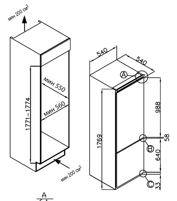 Фото Встраиваемый холодильник с морозильной камерой Evelux FI 2201
