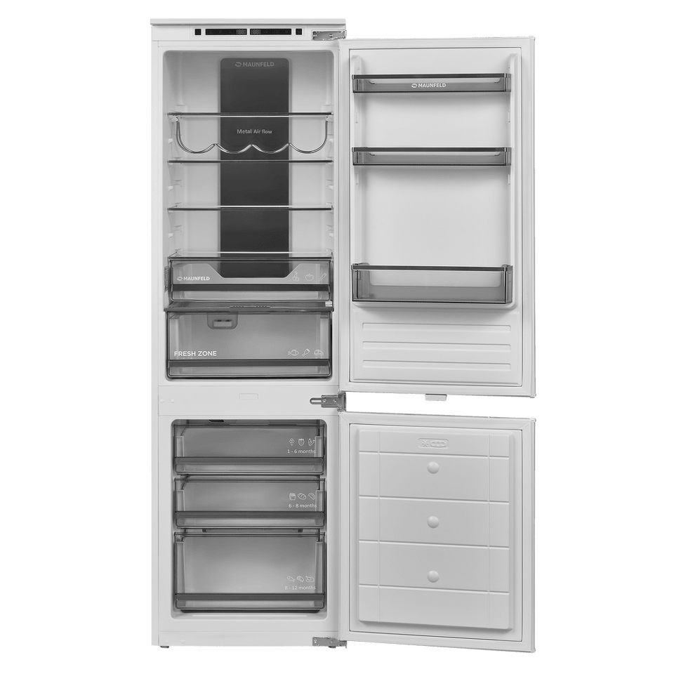 Современный встраиваемый двухкамерный холодильник высотой 177 см.