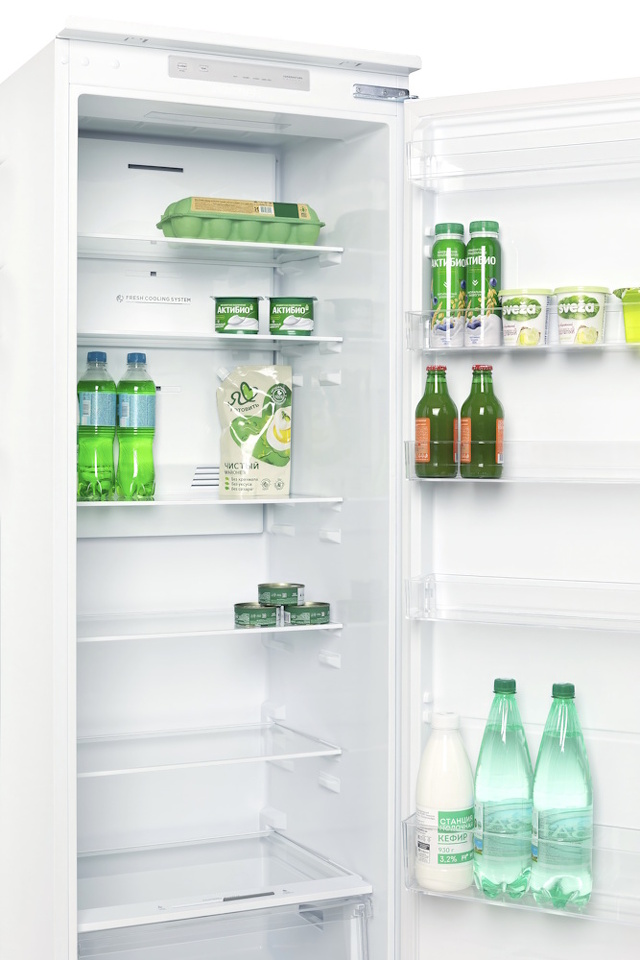 Класс энергопотребления: А++ Общий объем: 304 л Объем холодильной камеры: 304 л Климатический класс: ST Стеклянные полки из закаленного стекла Дисплей внутри прибора Светодиодная подсветка Скользящее крепление Ш х В х Г= 540 х 1785 х 550 мм