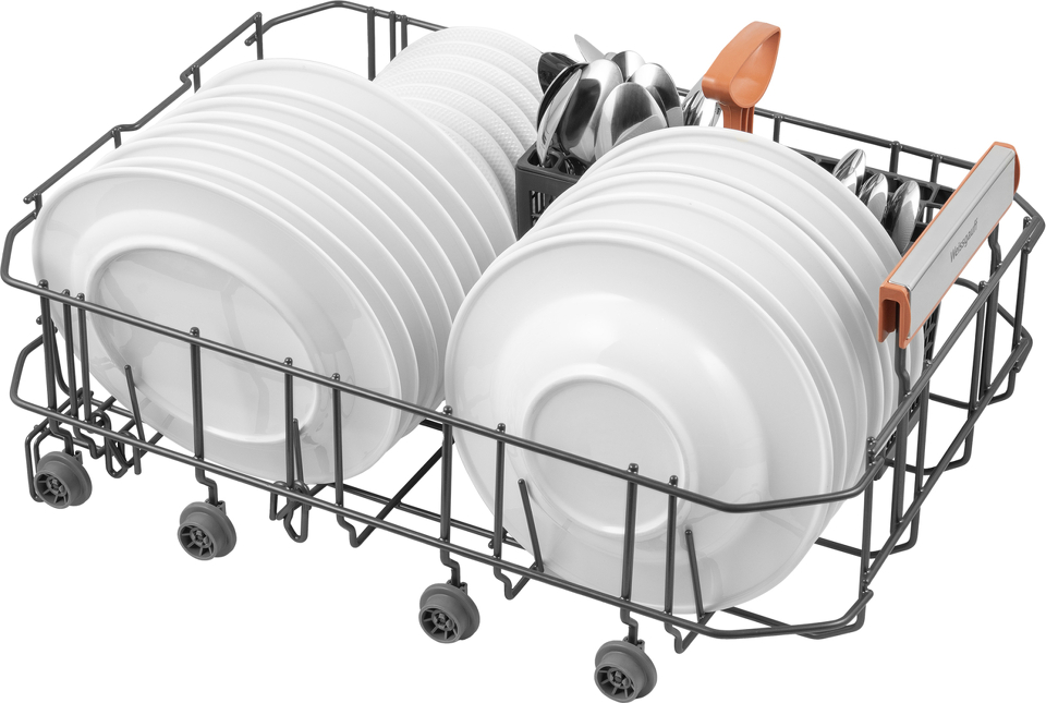 До 9 комплектов посуды одновременно вы можете расположить в данной посудомоечной машине, благодаря современным продуманным и эргономичным корзинам, которыми Weissgauff оснастили эту модель!
