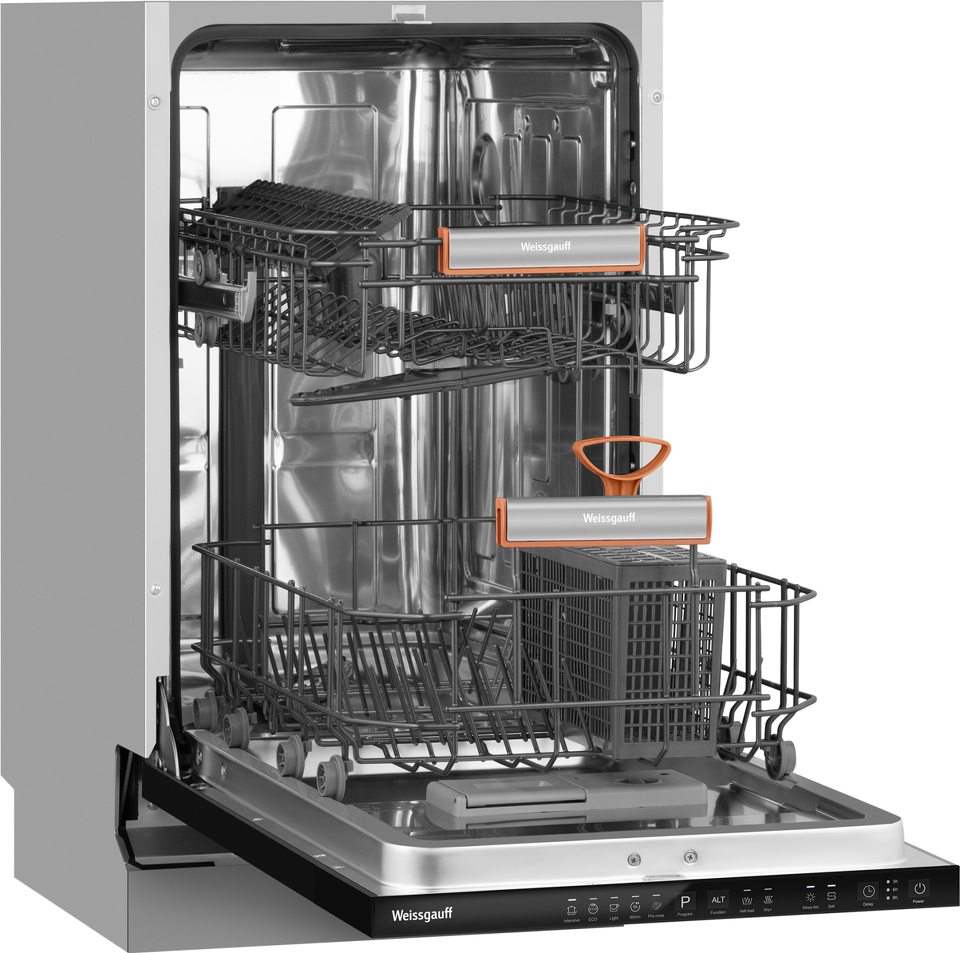Встраиваемая посудомоечная машина Weissgauff шириной 45 см воплощает в себе один из наших ключевых принципов: достойное качество по разумной цене! Эта модель оснащена двумя функциональными корзинами и обладает вместимостью 9 комплектов посуды. А 5 эффективных программ всегда помогут подобрать оптимальный режим в зависимости от типа посуды и уровня загрязненности.