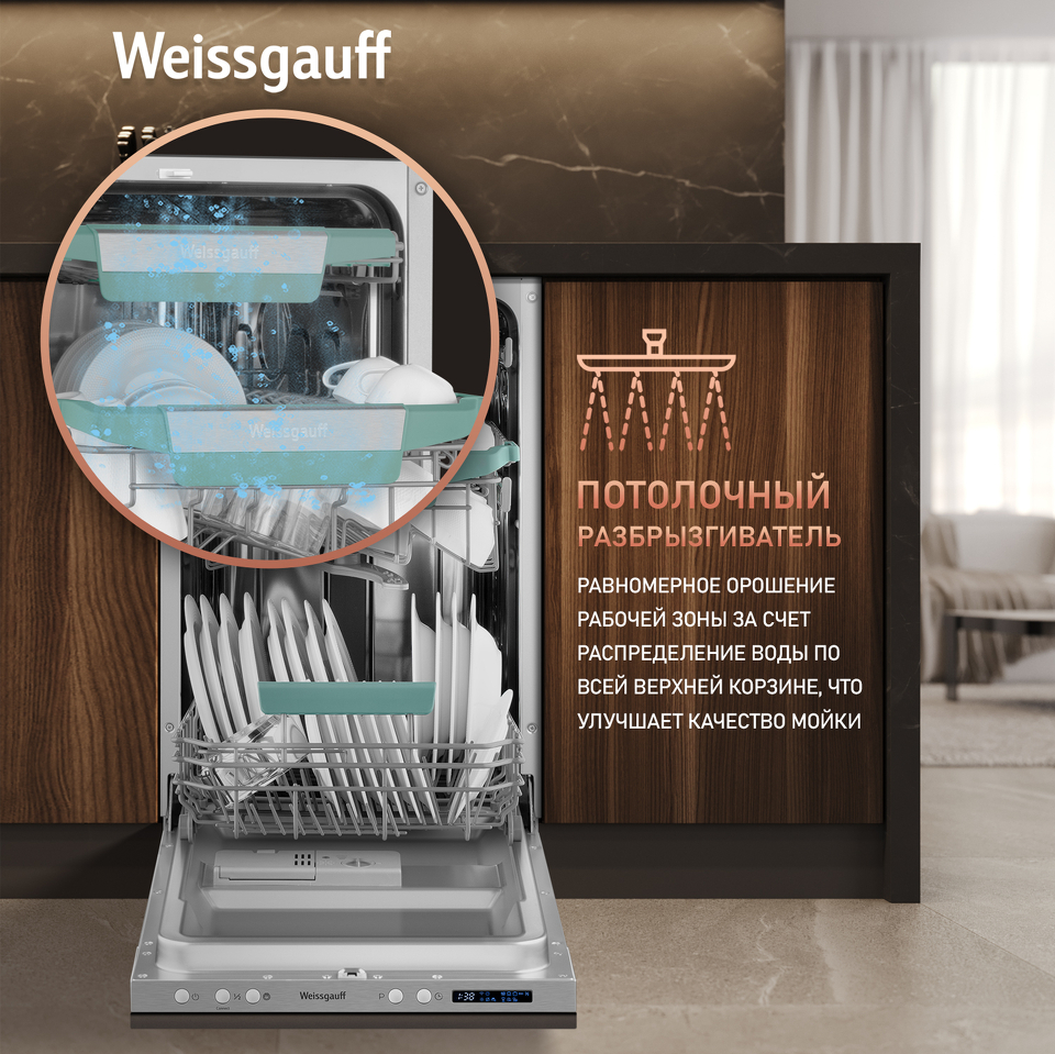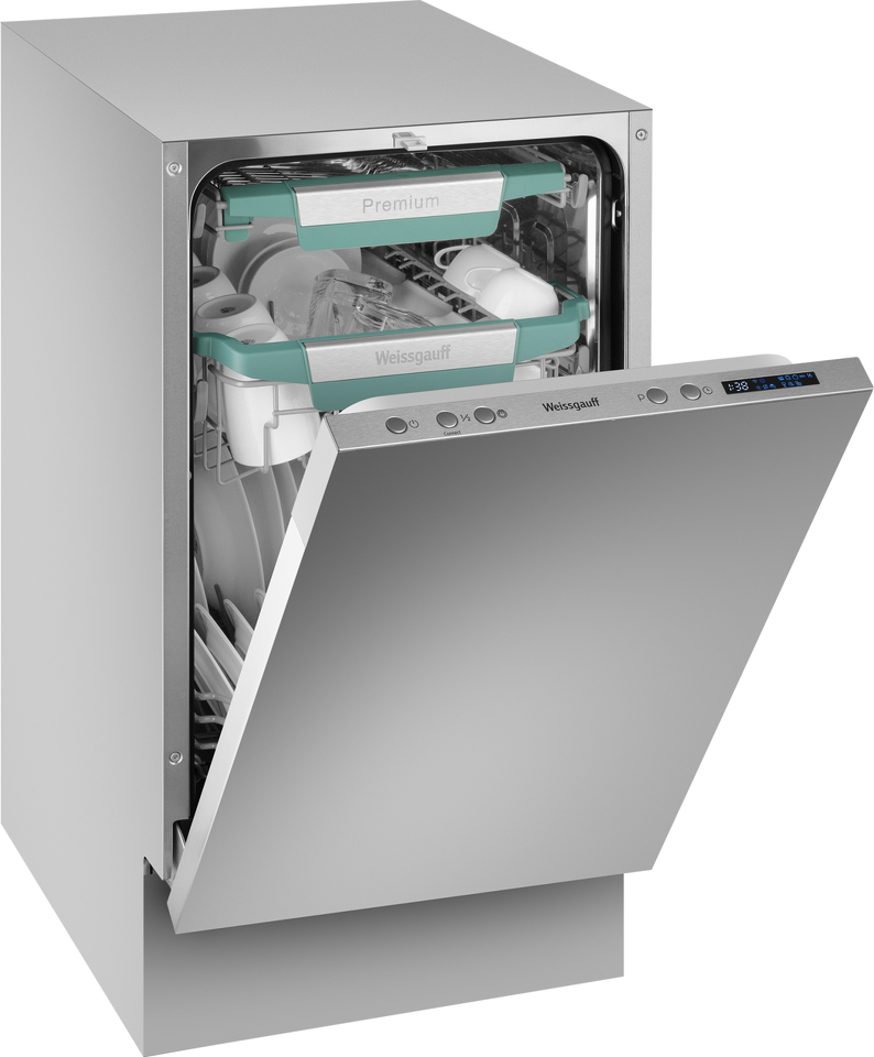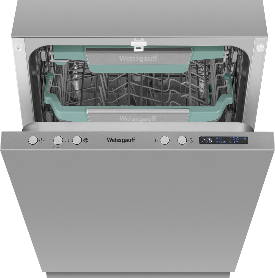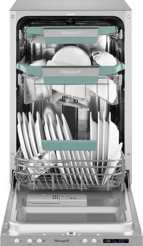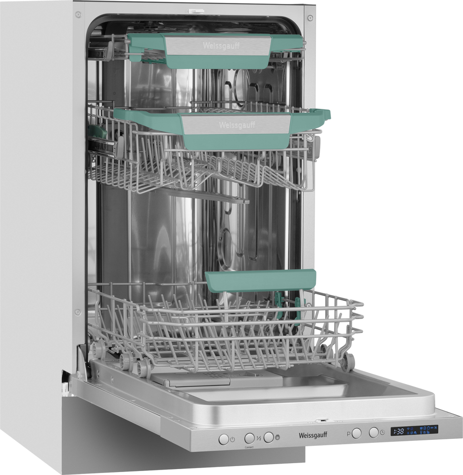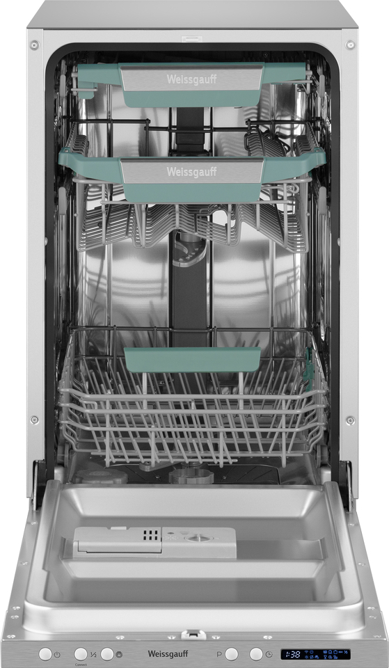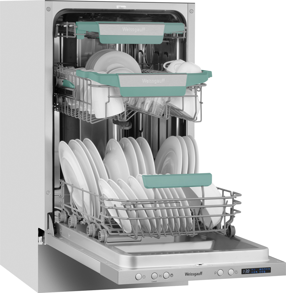 Узкая посудомоечная машина Weissgauff, оснащенная модулем Wi-Fi управления, не только сэкономит место на вашей кухне, но и обеспечит идеальный результат: 3 корзины позволят расположить посуду оптимальным образом для достижения наилучшего качества мытья а наличие автопрограммы позволит машине самостоятельно определить количество посуды, степень загрязнения, время мойки, а также необходимую температуру.