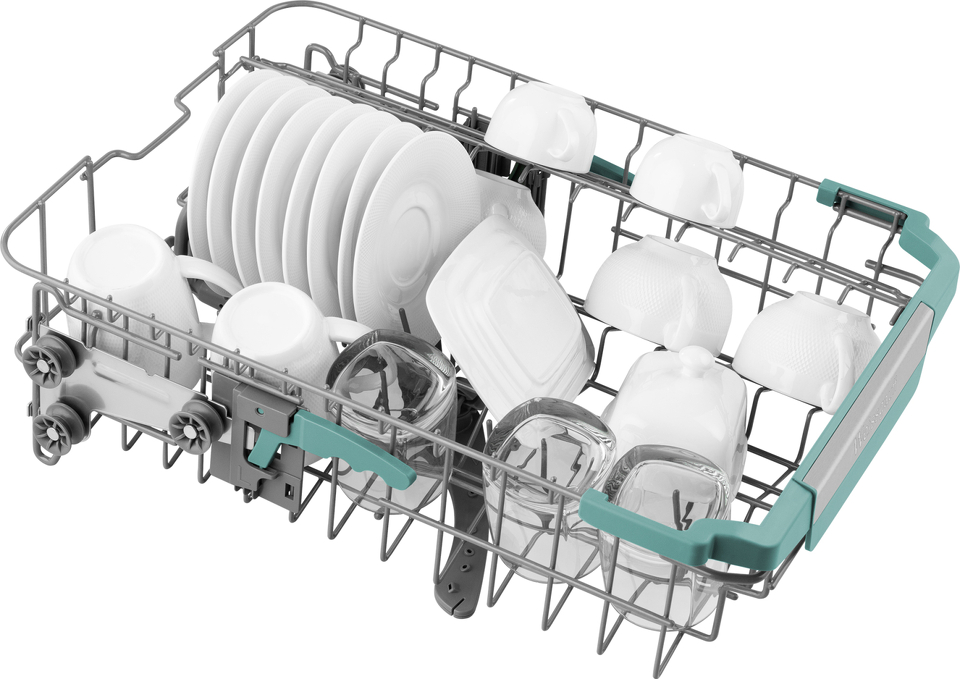 Вертикальная регулировка средней корзины по высоте позволит легко выставить нужное положение, даже если корзина уже загружена посудой