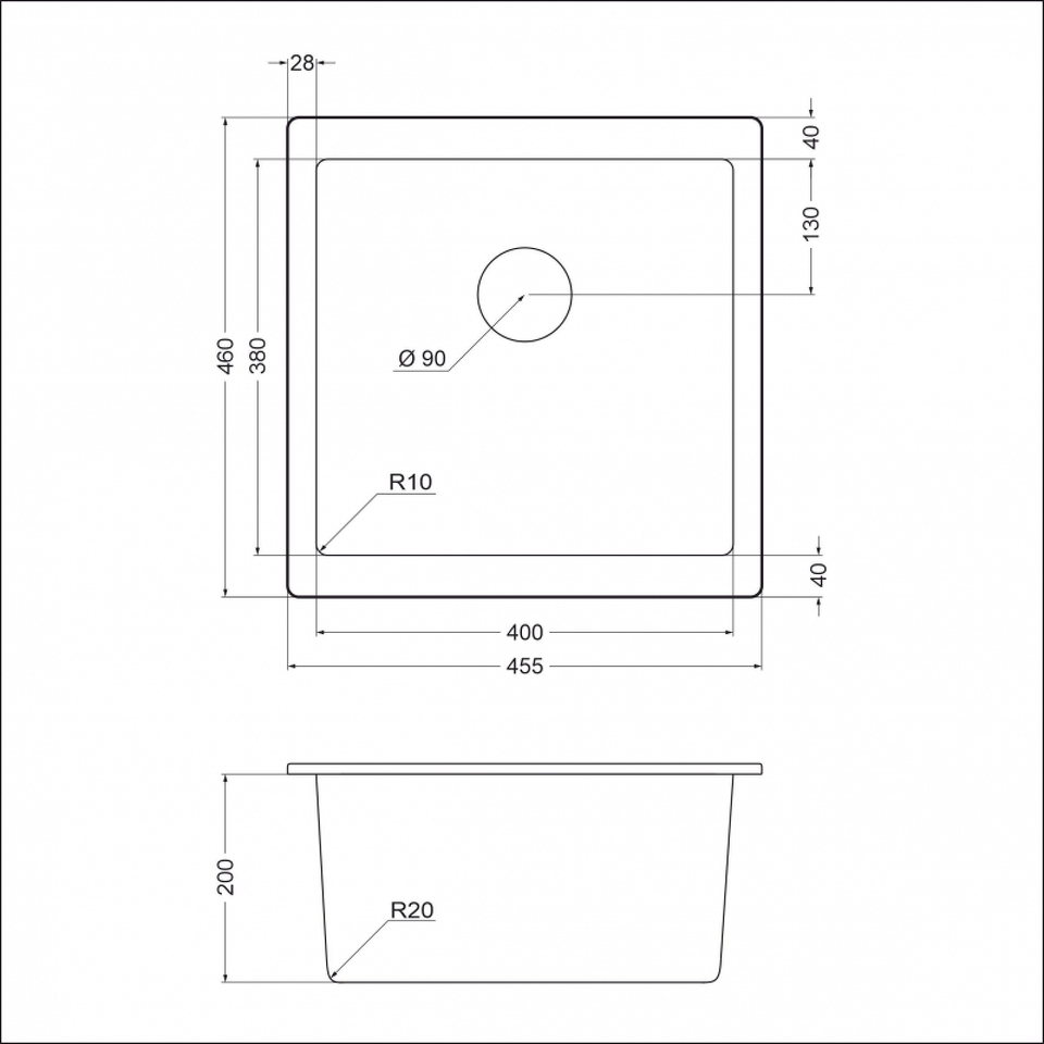 Глубина основной чаши, мм 200