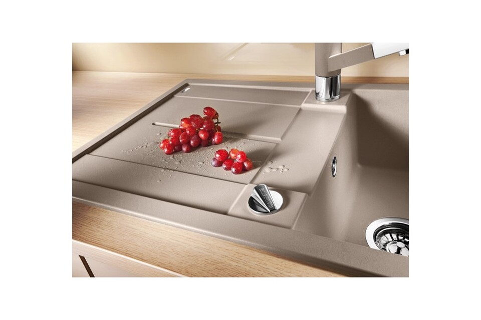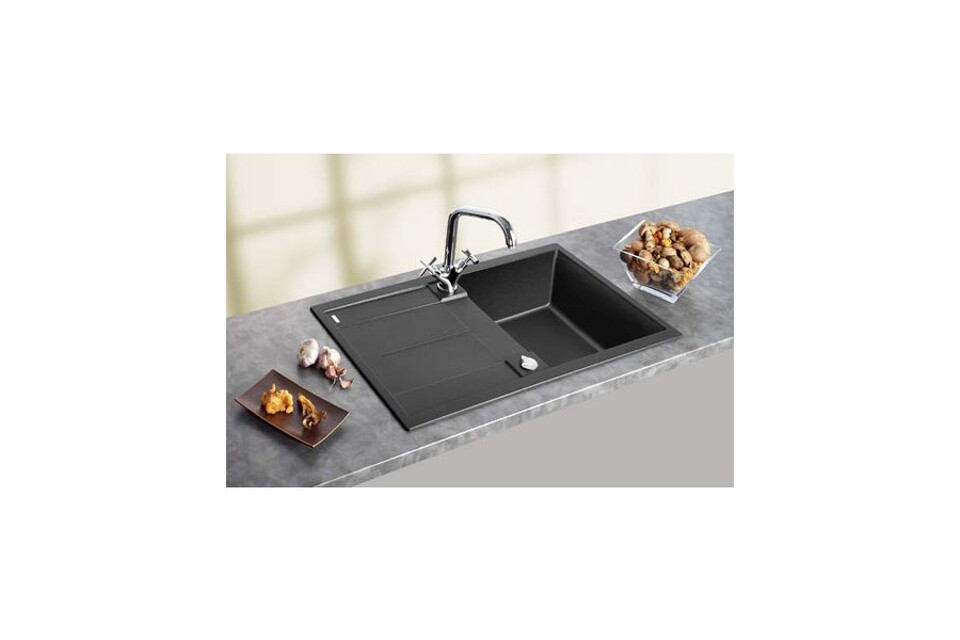 Каменная мойка Blanco Metra 5S имеет имеет более десятка цветовых решений от светлого песочного до стильного кофейного. Для любителей классики предлагаются белый и угольно-черный. Чаша модели прямоугольная, а крыло имеет рельефную поверхность, облегчающую сушку посуды, размораживание и обработку продуктов питания.