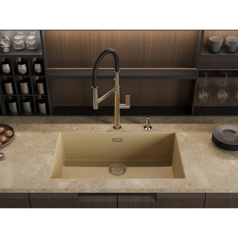 • Материал выдерживает высокие температуры до 280°С (но не стоит ставить на поверхность мойки горячие сковородки и кастрюли, т.к их температура может достигать 500°С).