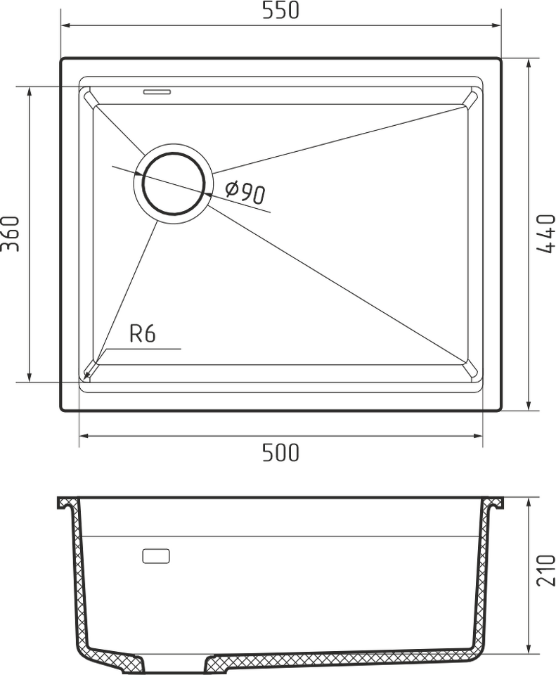 Гранитная мойка Rivelato LINO 554-L 1-чаш 550*440 nero