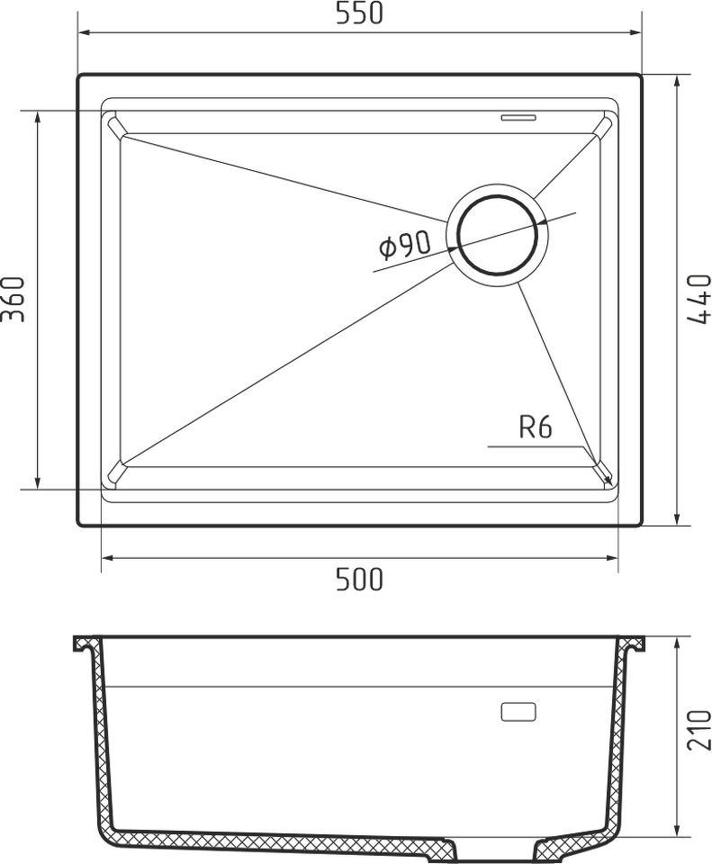Гранитная мойка Rivelato LINO 554-R 1-чаш 550*440 antracite