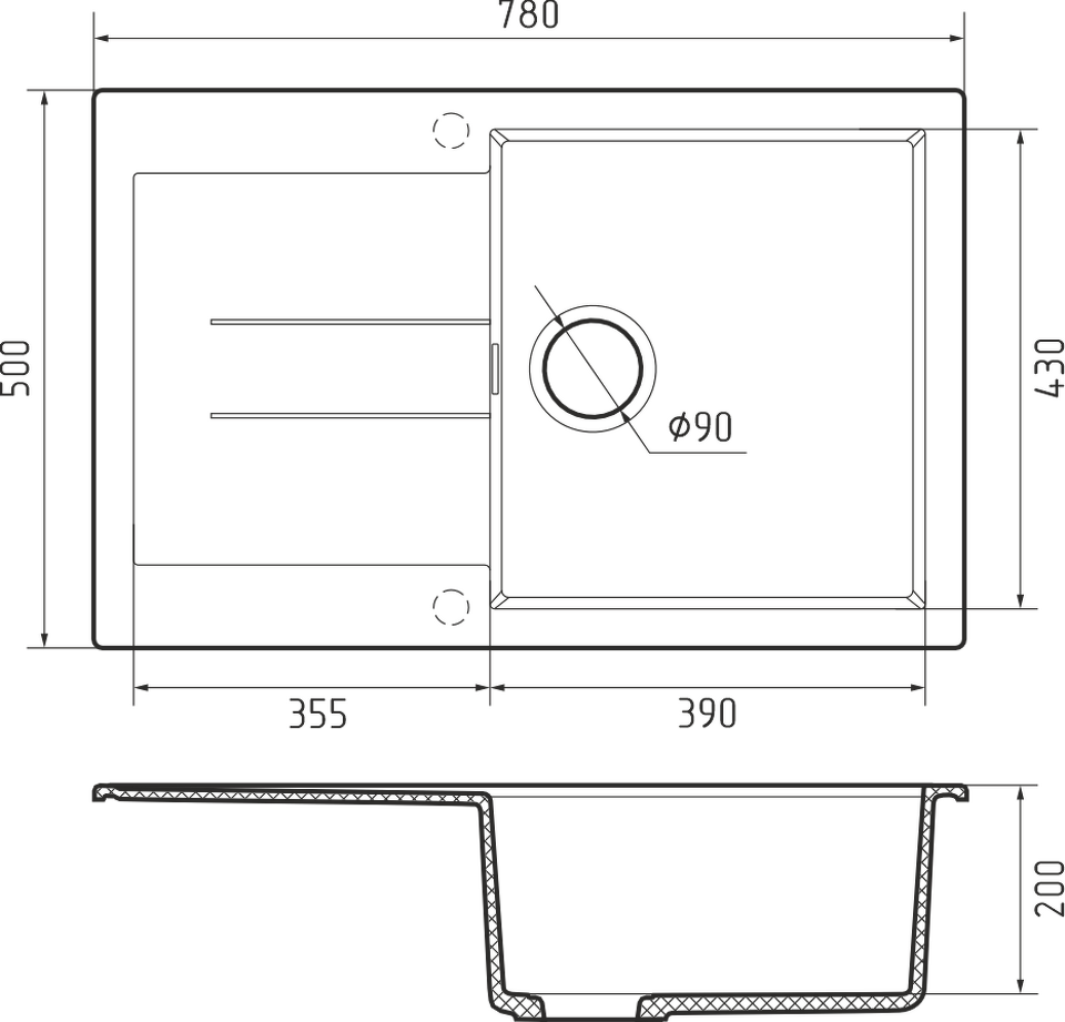 Гранитная мойка Rivelato LUMO 7850 1-чаш 780*500 Nero
