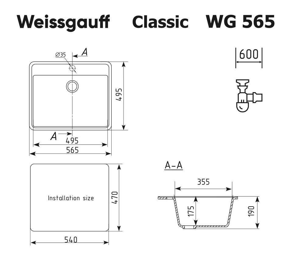 Гранитная мойка Weissgauff WG 56504 Classic Black
