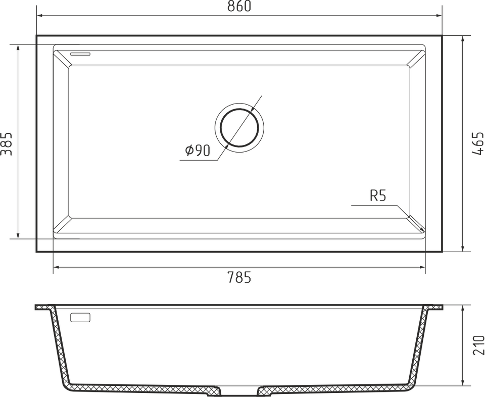 Rivelato STRIA 8679 1-чаш 860*460 Calcestruzzo