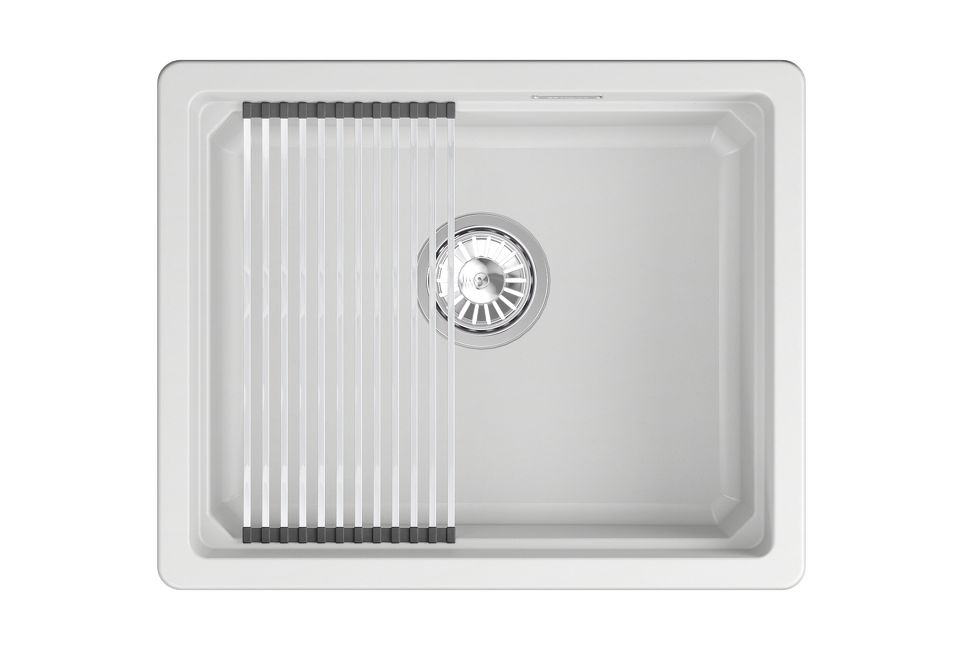 Мойка российского производителя Granula. Односекционная кухонная мойка прямоугольной формы 550х450 мм для установки под столешницу в шкаф 600мм. Представляет собой инновационный комплекс с удобной площадкой внутри чаши для установки ролл-мата или разделочной доски. Выполнена из кварцевого композитного материала высокой плотности и гигроскопичности, что обеспечивает не менее 20 лет надежной эксплуатации. Ролл-мат и дозатор из нержавеющей стали идут в комплекте.