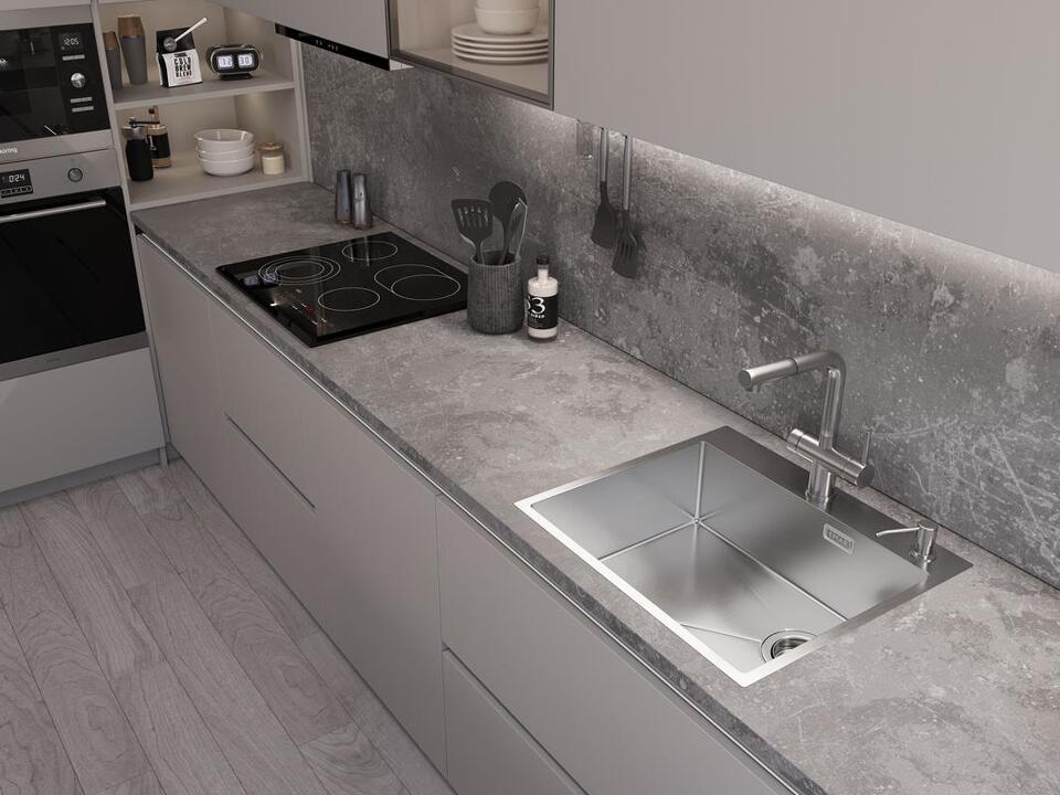 Мойка из нержавеющей стали с PVD покрытием. PVD покрытие (метод покраски путем напыления в вакууме) встраивается в кристаллическую решетку металла, образуя прочный защитный слой. Легко удаляется жир, налет и разводы от воды.