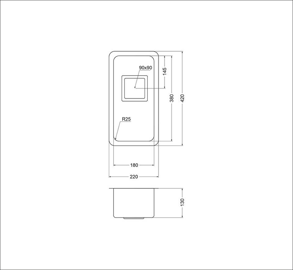 Вырез под мойку, мм 220 x 420 мм