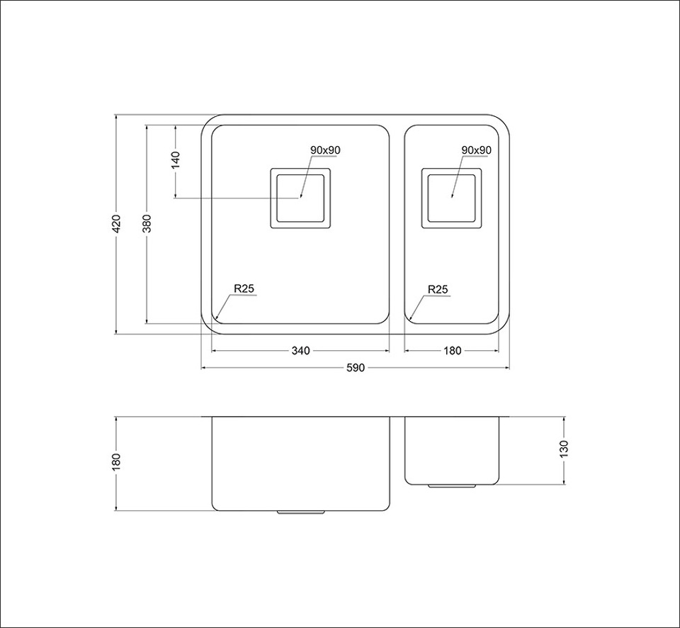Размеры мойки, мм 590 x 420 мм