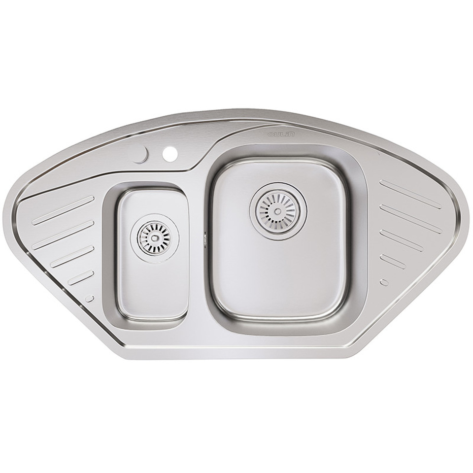 Мойка из нержавеющей стали AISI. AISI 304 содержит 18% хрома и 9% никеля, что обеспечивает максимальную устойчивость к коррозии. Шлифованная поверхность моек OULIN достигается по технологии Satin Finish Brushing. С обратной стороны, на дне чаши, находятся резиновые шумопоглащающие накладки и антиконденсатное покрытие, что делает мойку бесшумной.